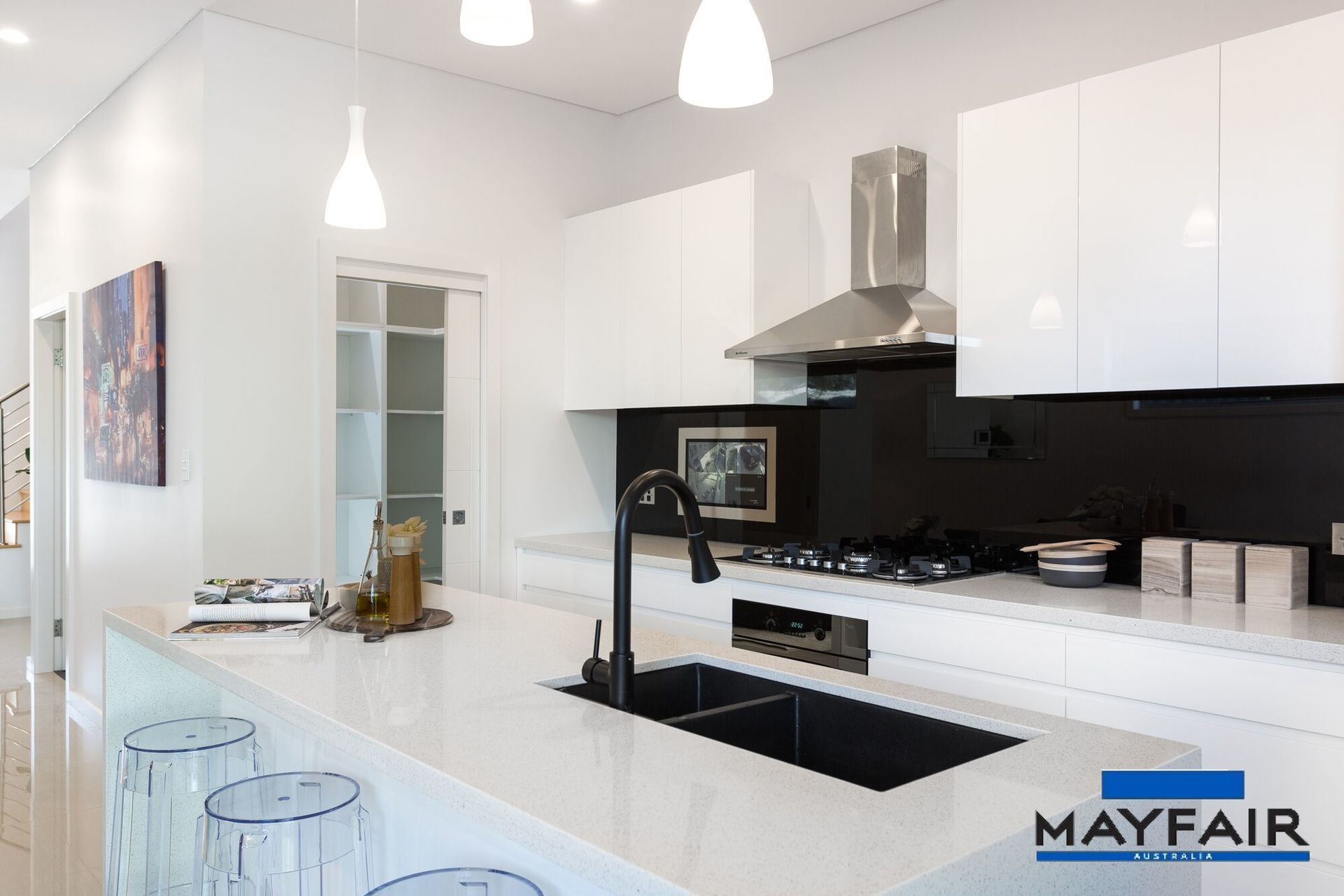 - Modern kitchen with stone bench tops, gas appliances and dishwasher