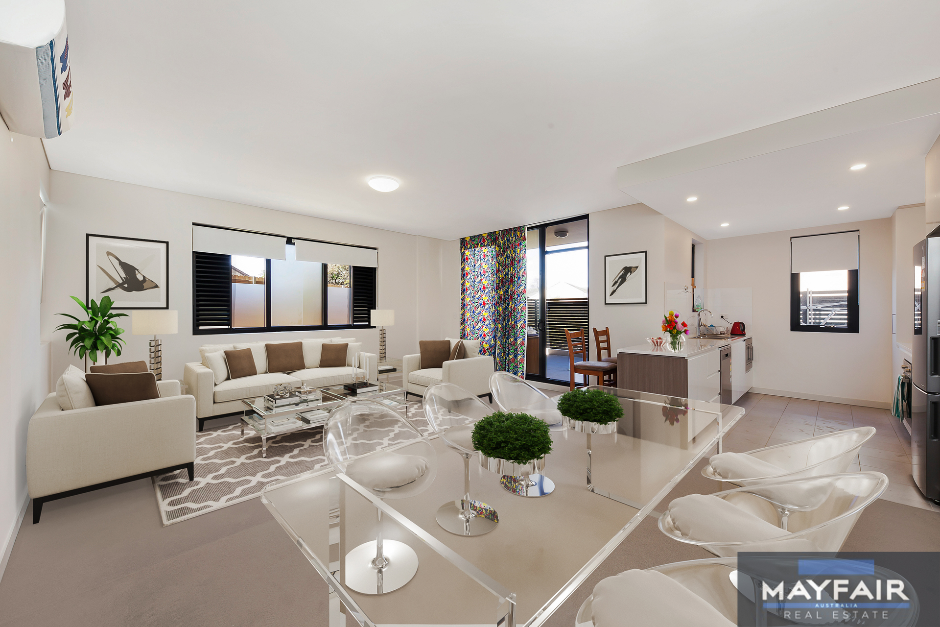 - Light filled open plan living and dining area