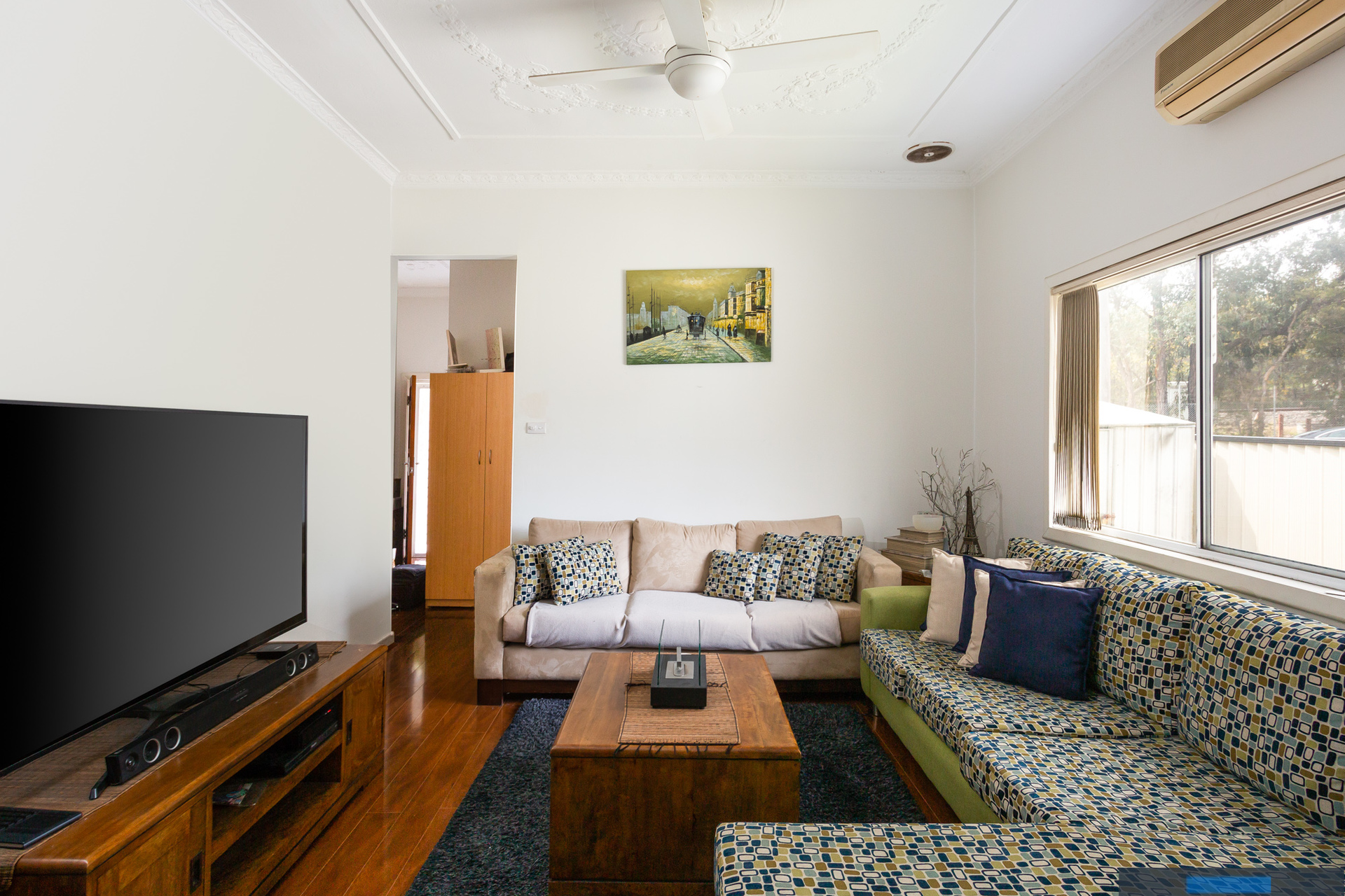 Polished timber floorboards throughout