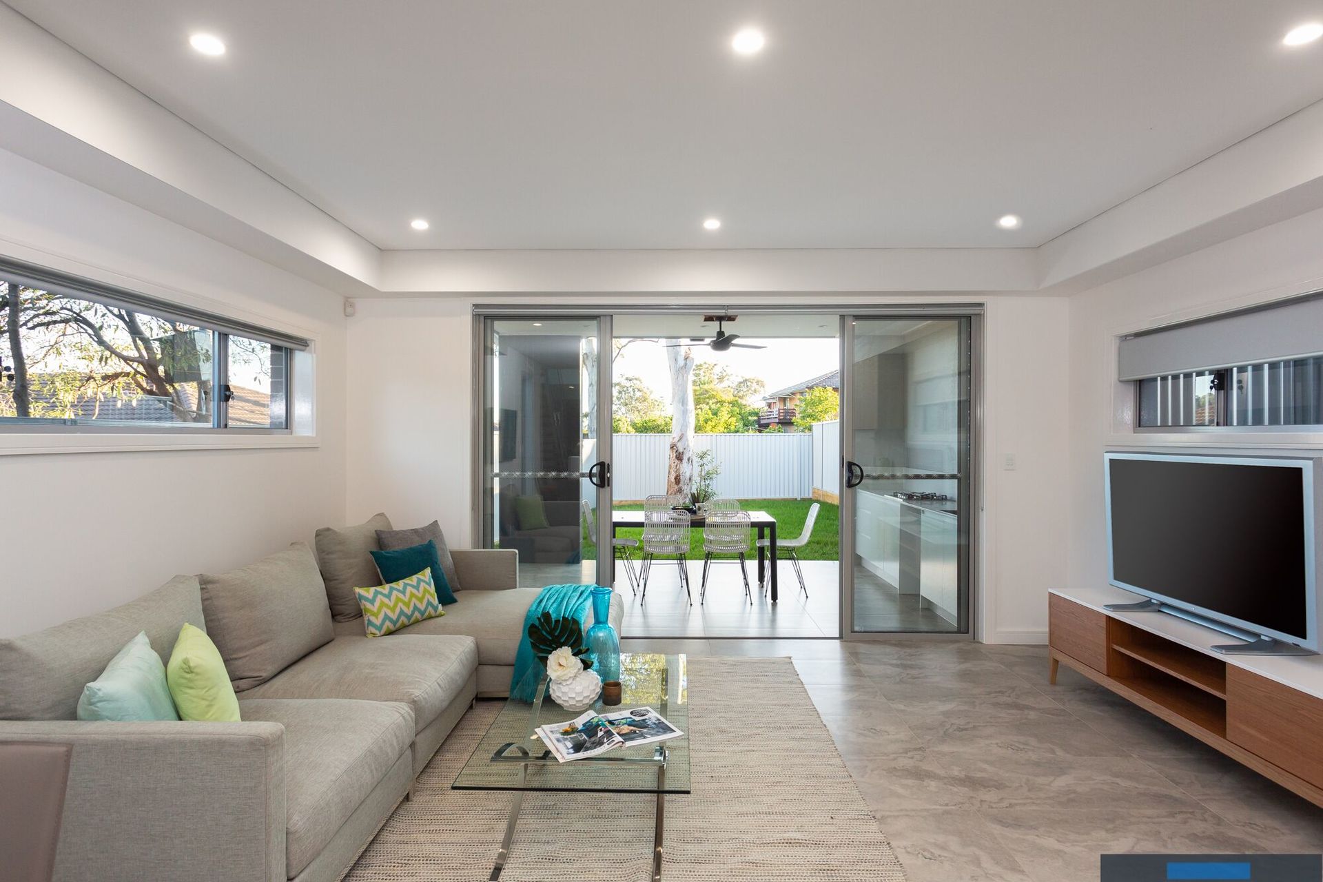 Nestled in a whisper quiet location in arguably one of the best streets in Georges Hall is this luxurious brand new home. With commanding street presence you will marvel from the moment you walk in by the high ceilings and natural light captured by the floor to ceiling windows. With every detail meticulously thought through you have the luxury of multiple living rooms and a walk in pantry that is sure to impress. Bordering Yagoona and walking distance to local parks, shops and being only attached by the garage this home won't last long.
