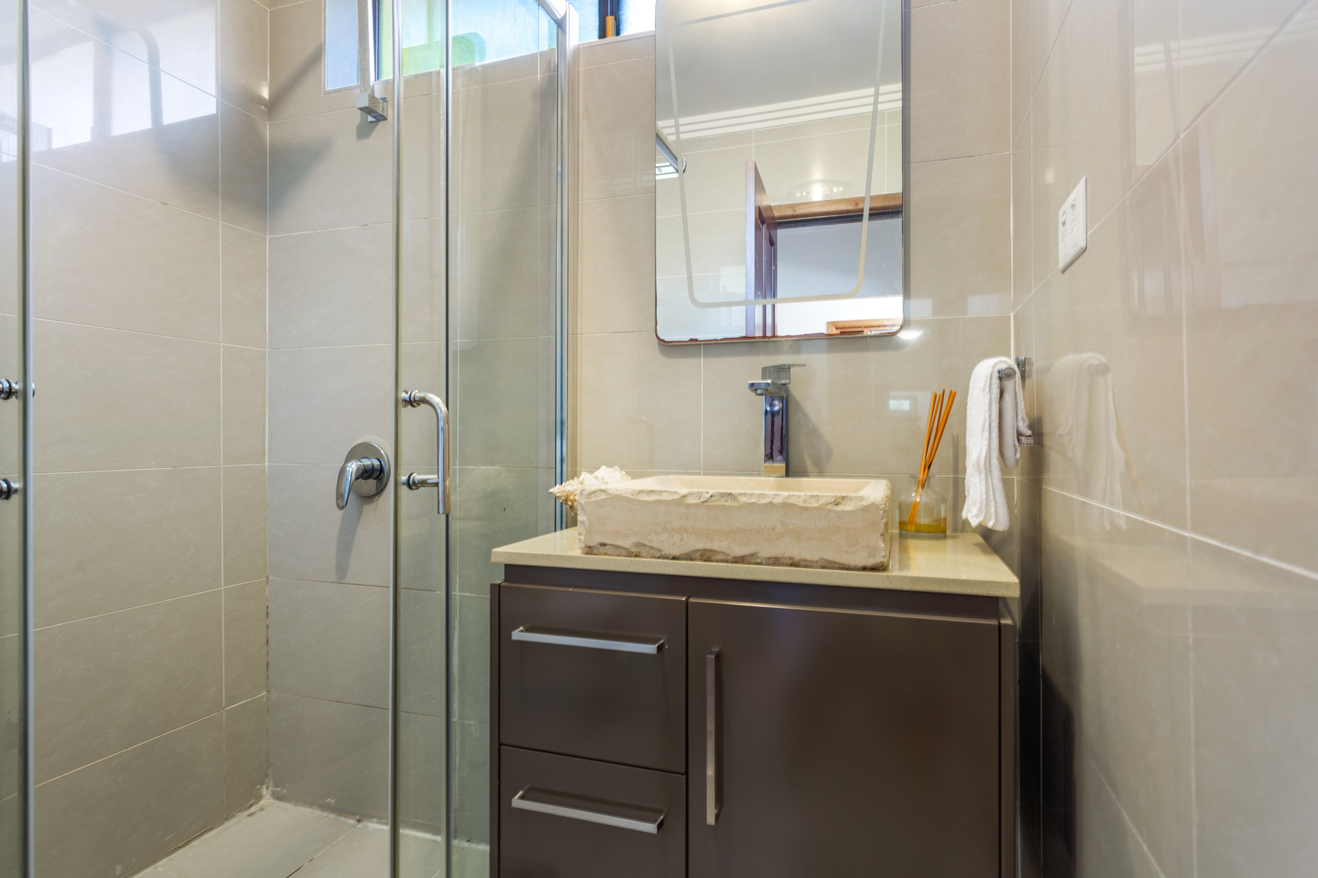 Modern Completely Tiled Bathroom / Laundry with toilet & shower