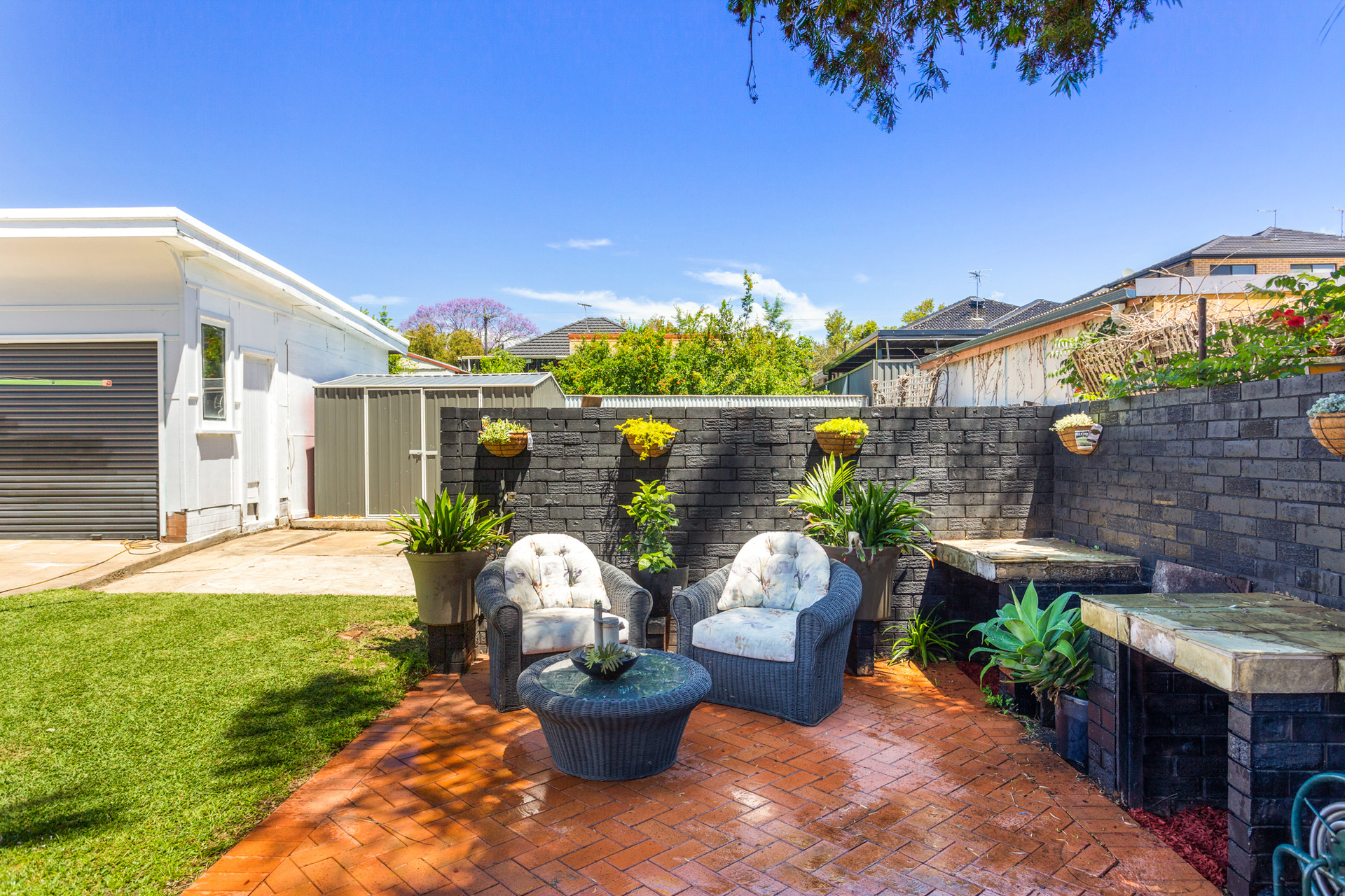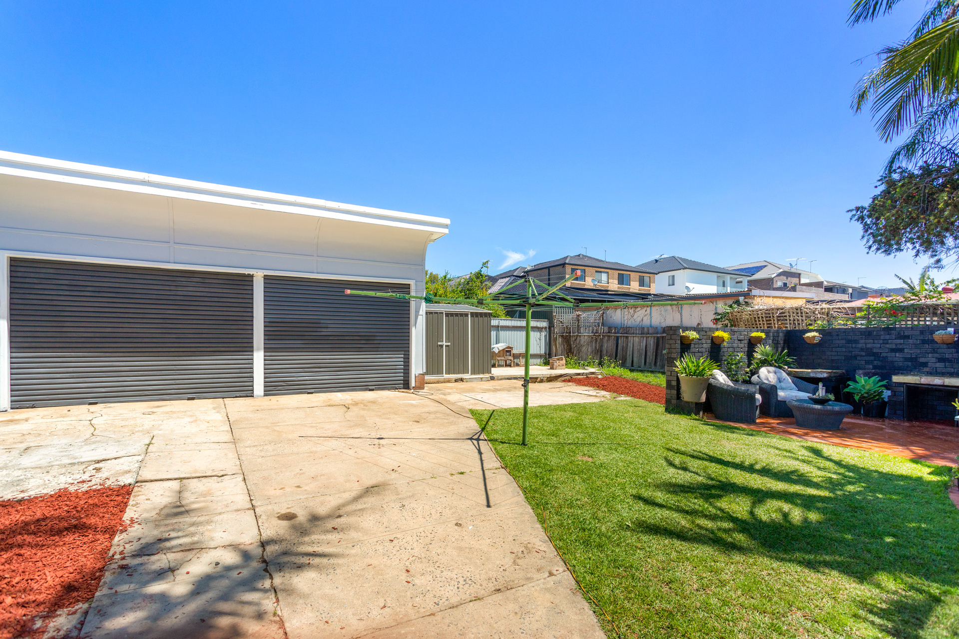 A serene garden with a mango tree that produces seasonally on average up to 150 large sweet juicy home-grown mangoes making them a perfect addition for any recipe. A double garage provides a large space for parking and or storage, with a side shed to place all your garden and tool needs.