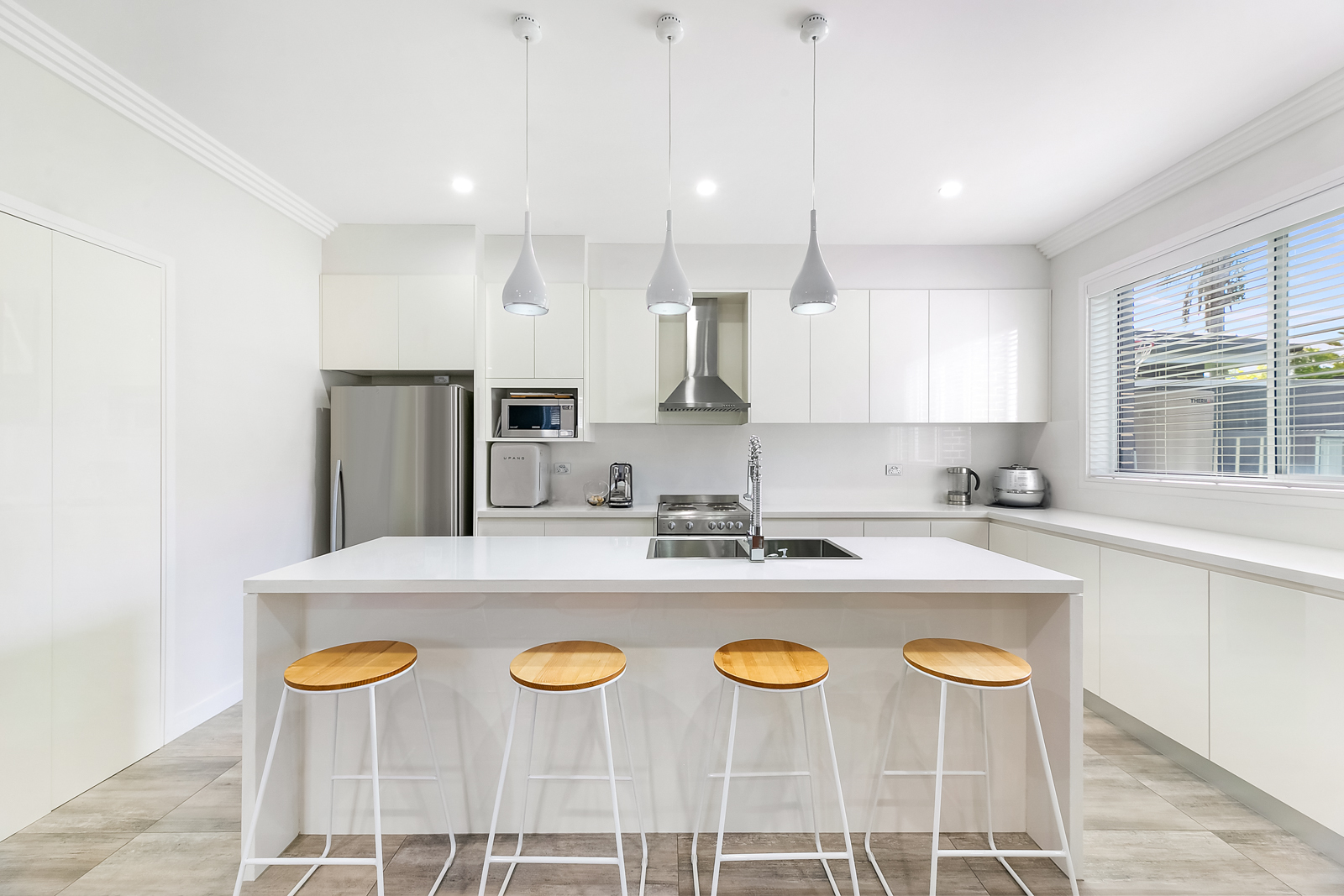 • Ultra-modern kitchen with stainless steel appliances and breakfast bar