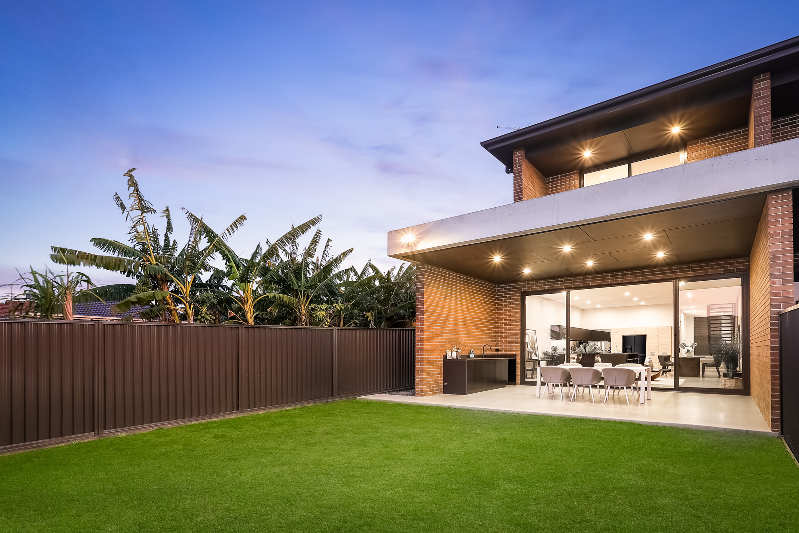 - Sensational open plan living and dining under soaring ceiling