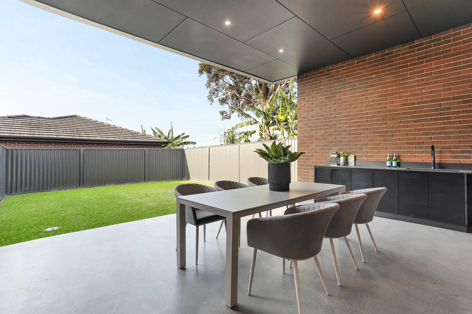 - Large covered entertainers' terrace with kitchen/prep area