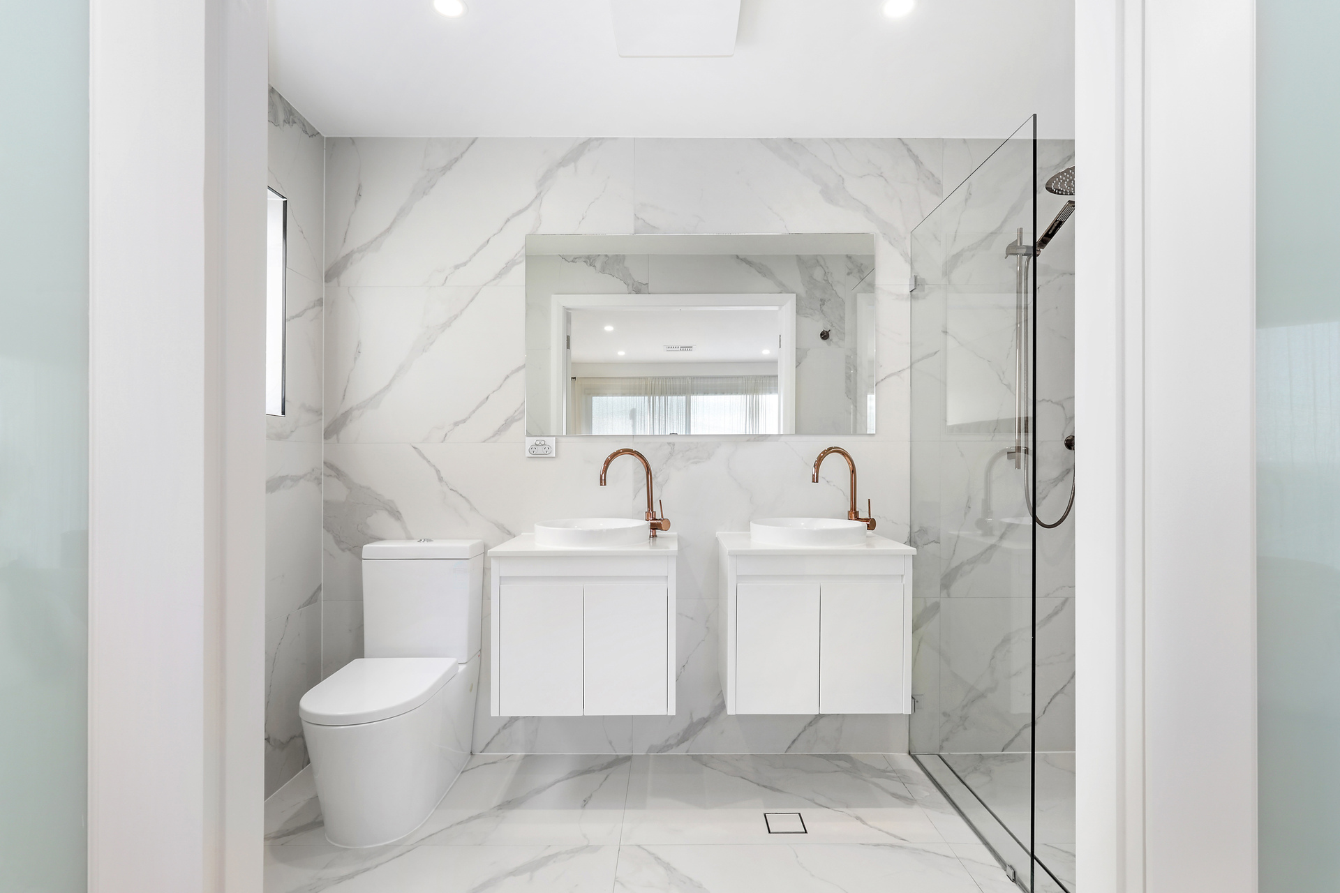 Lavish bathrooms, tapware by ABI interiors with rose gold in ensuite