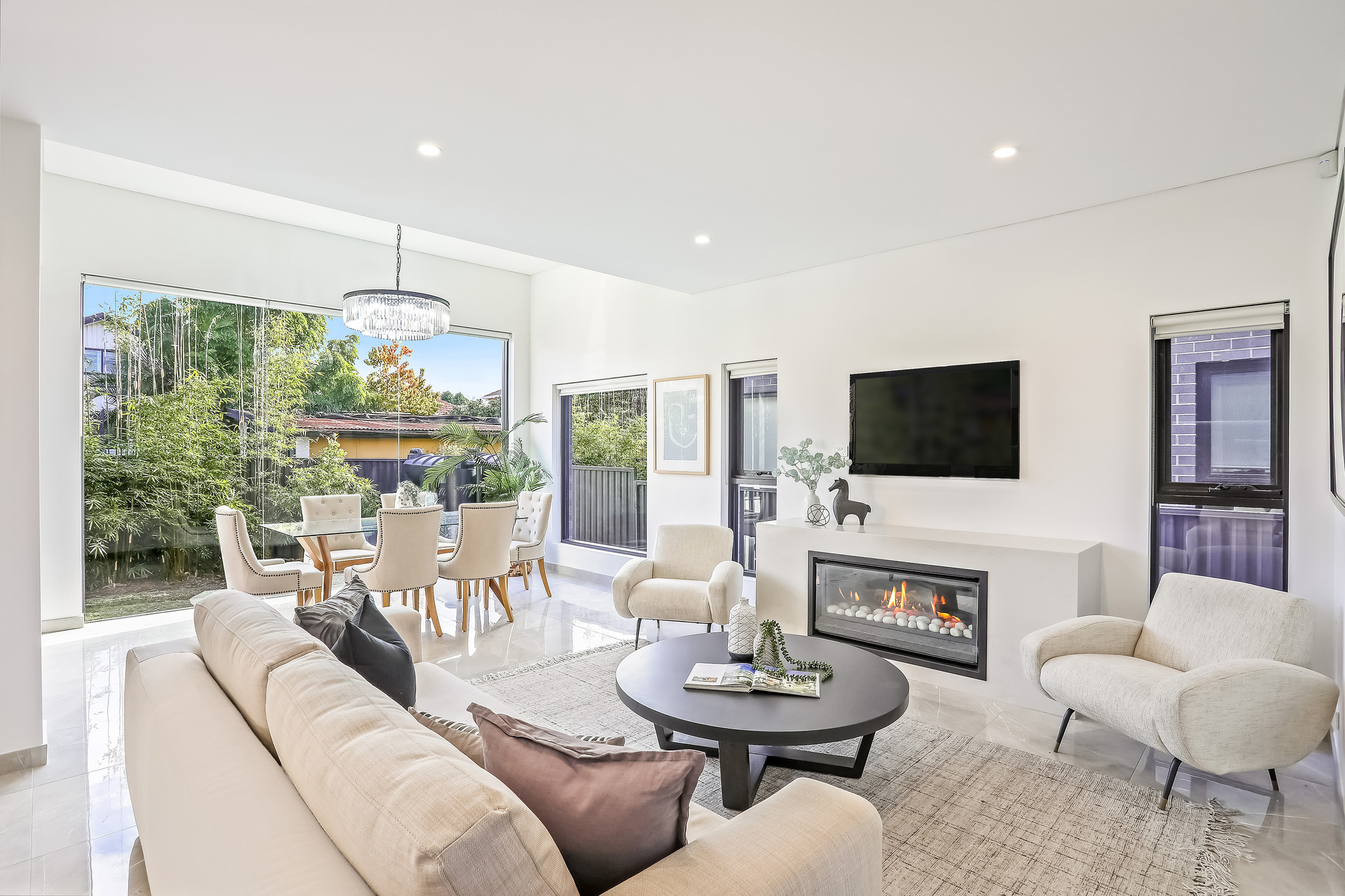Meticulously built and with commanding street presence this home features floor to ceiling windows allowing natural light that surrounds the home to filter in, a designer kitchen with gas appliances, herringbone flooring, gas fire place and all the bells and whistles you would expect from a luxury home like this. With first class finishes throughout, you also have the bonus of a second kitchen in the garage.