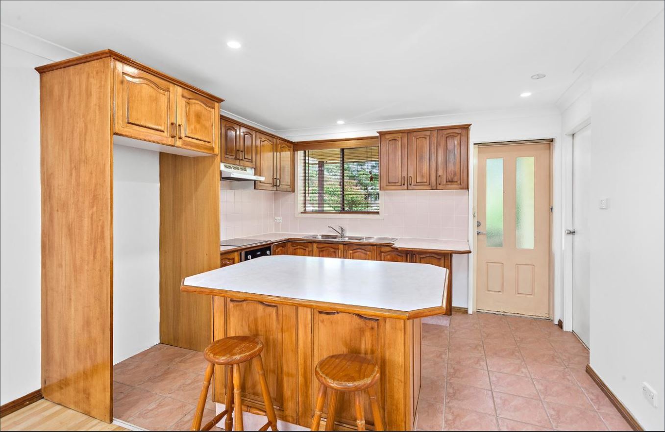 - Timber kitchen with tiled splash back and ample storage space