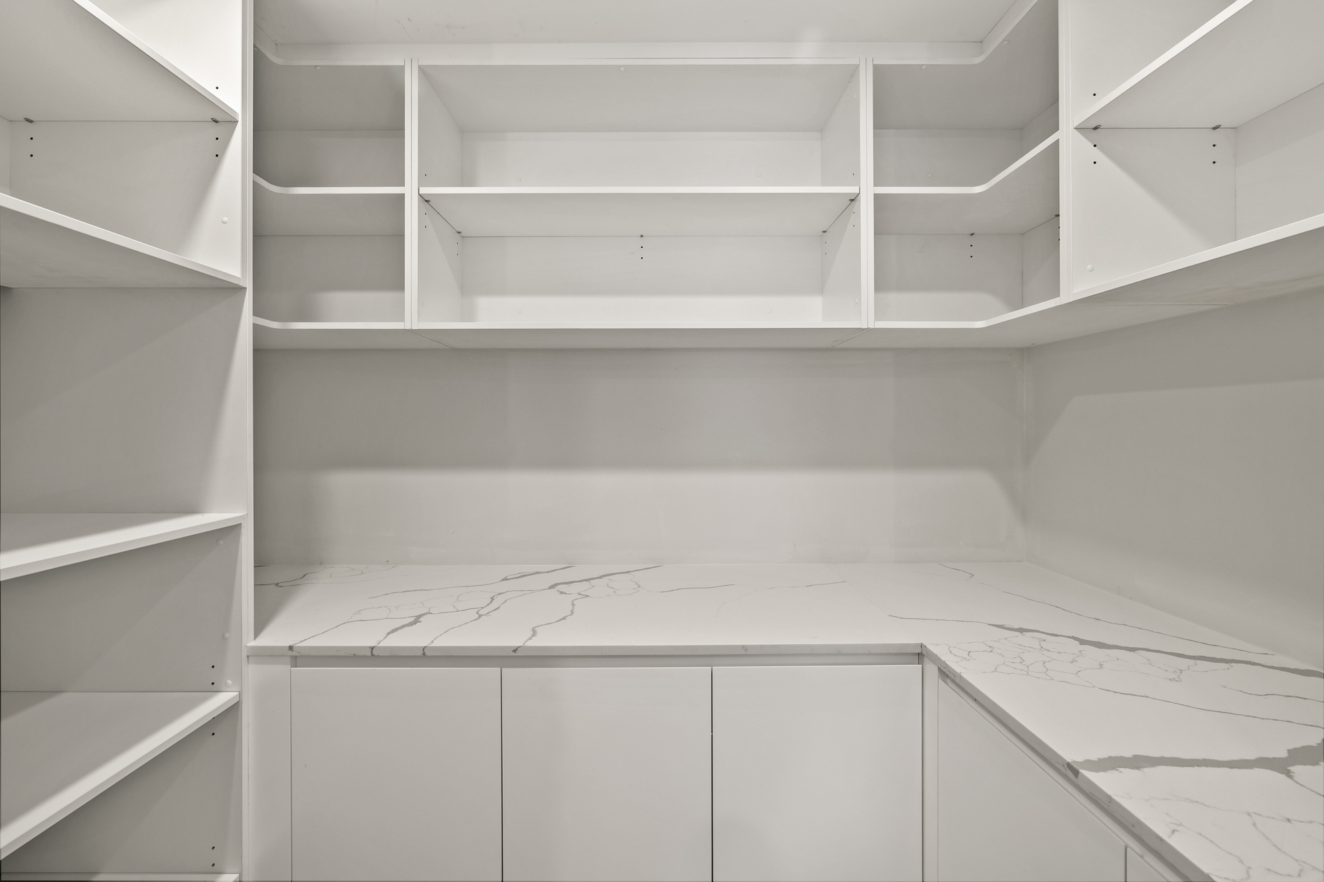 - Designer kitchen with stone bench, walk in pantry, gas 5 burner appliance, 90cm oven and dishwasher
