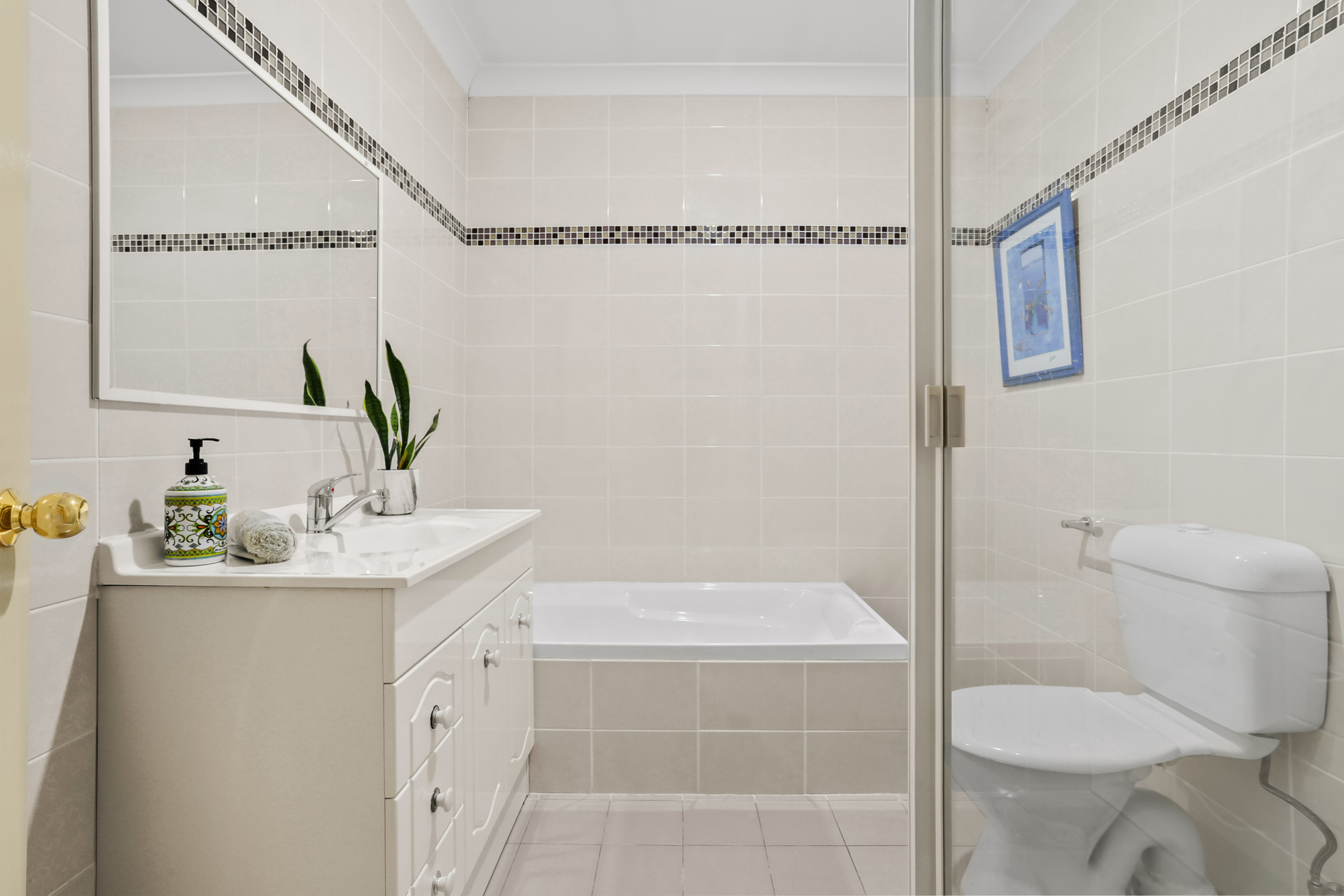 * Floor to ceiling tiled bathroom with separate bath & shower