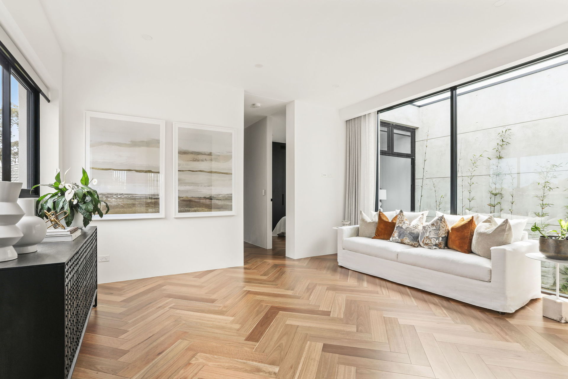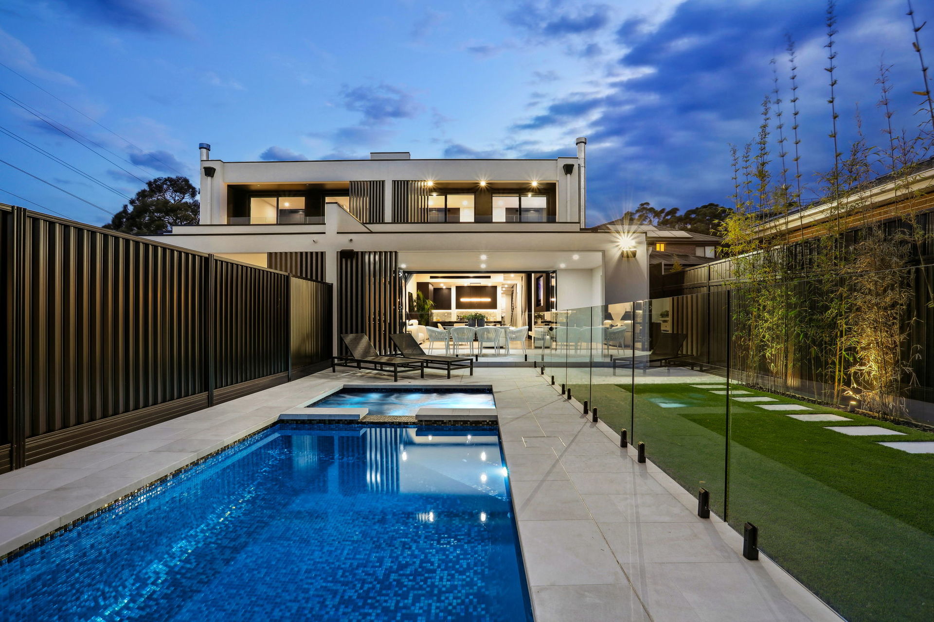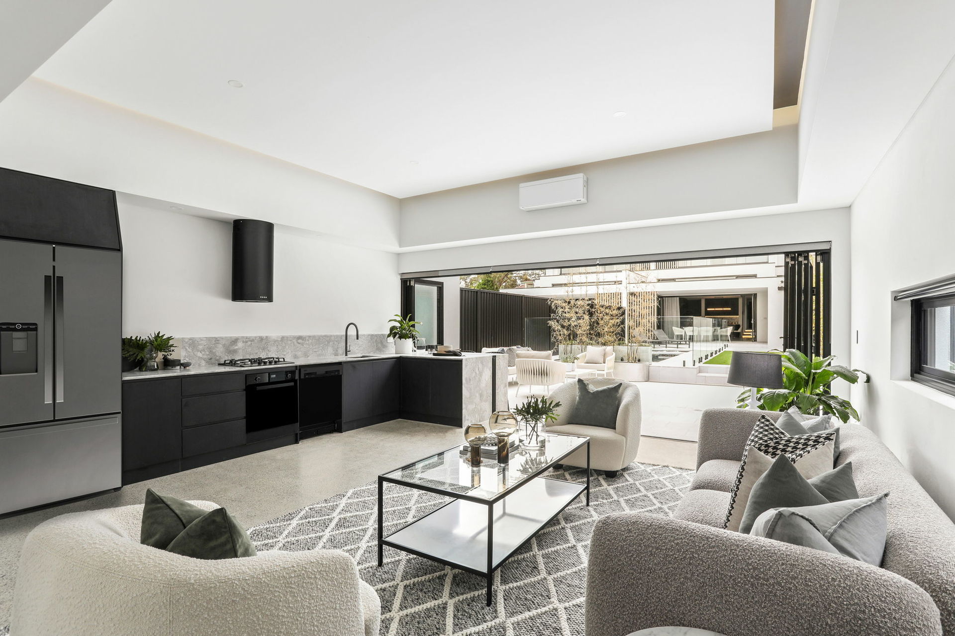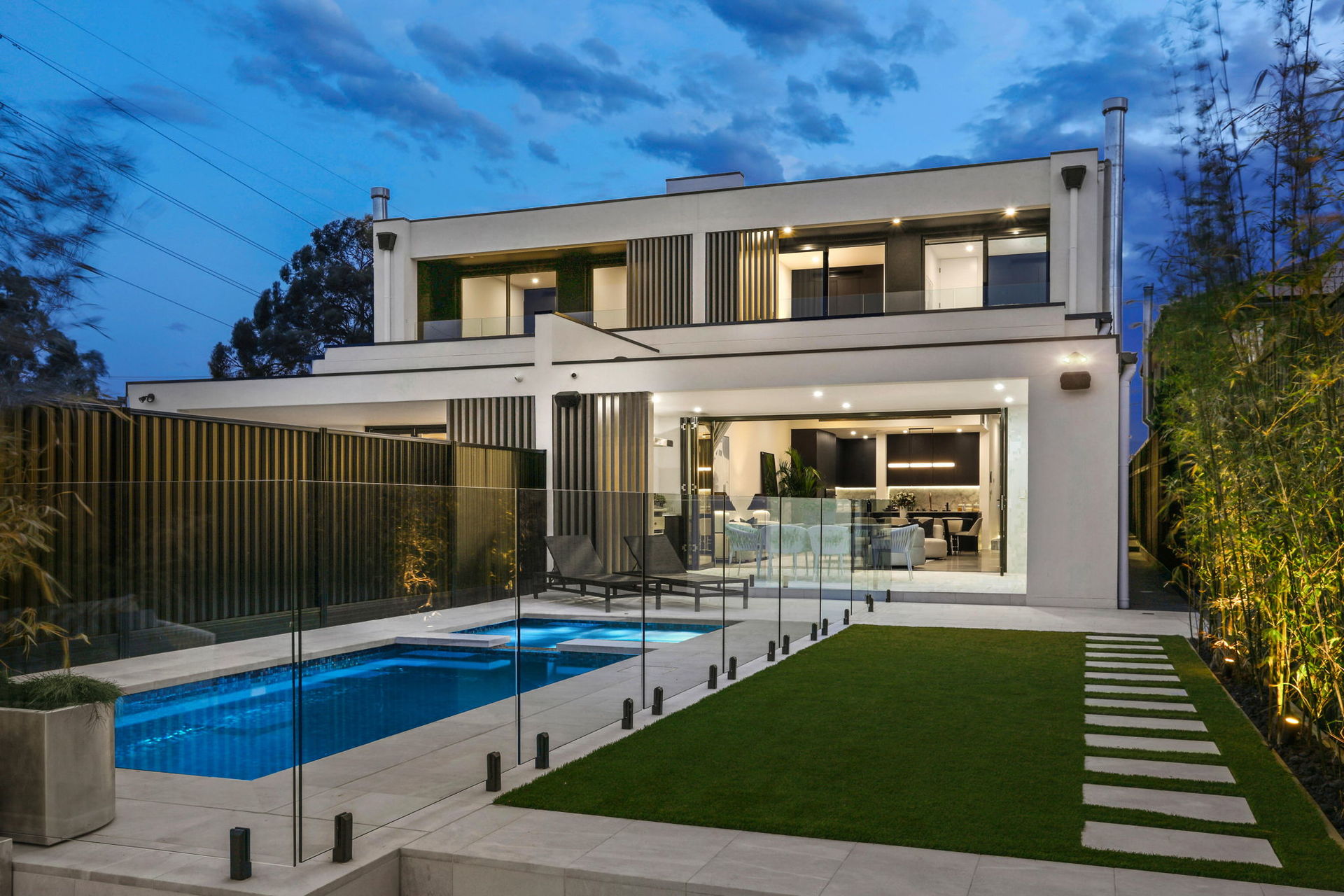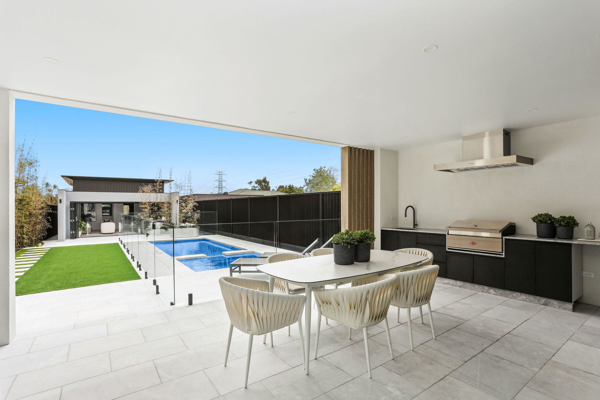The artistic façade makes a stunning first impression in a home that achieves visual impact in every single space. Common areas blend polished concrete and a selection of marble finishes, while commercial glazing is used to frame landscaped elements as living artforms.