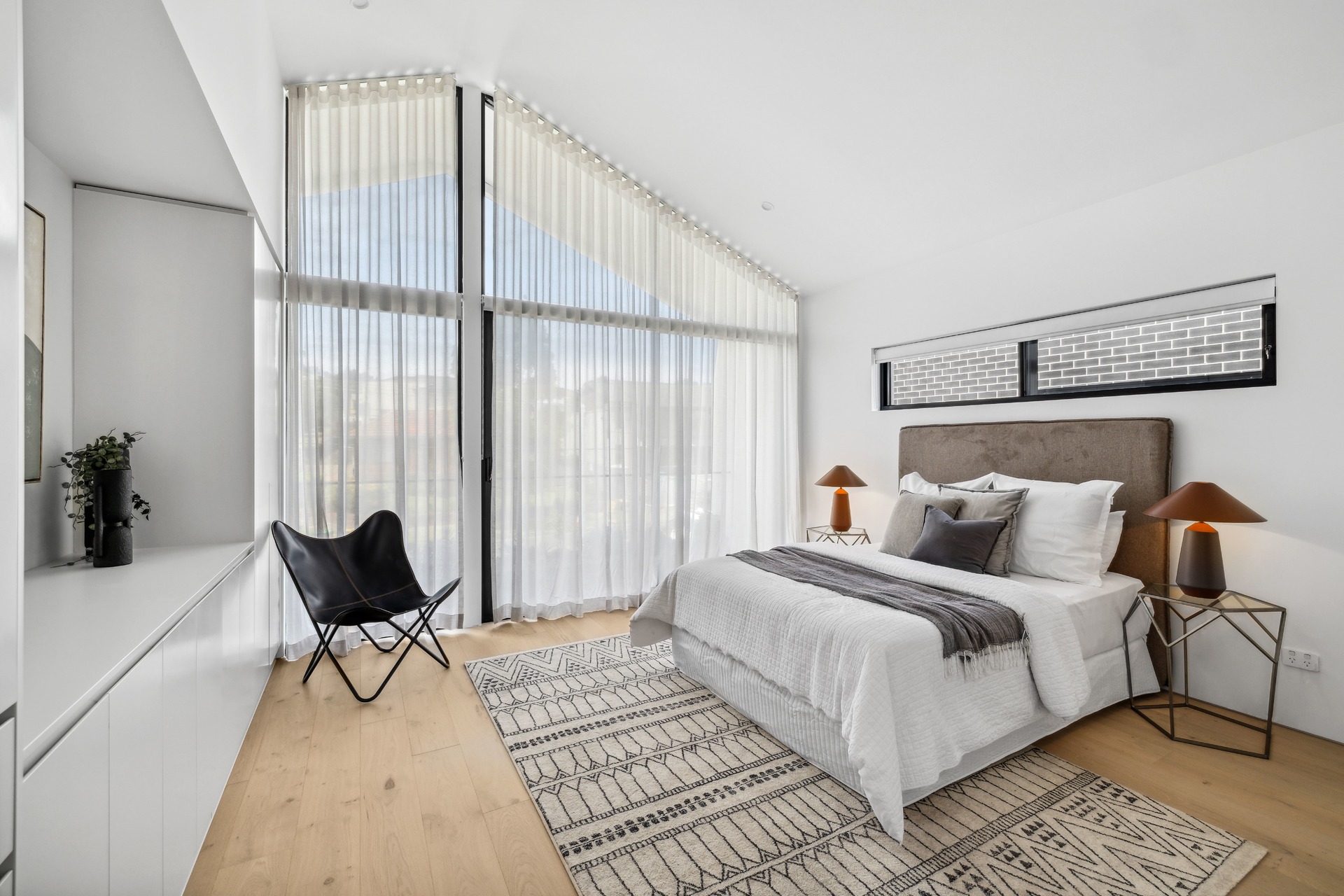 - The master bedroom is a true sanctuary, featuring floor-to-ceiling windows that flood the room with natural light, creating a serene and sunlit haven.