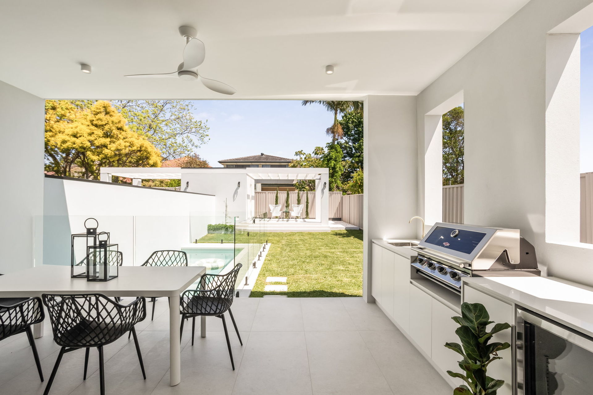 Step outside to your private alfresco area, designed for entertaining with a built-in BeefEater BBQ and a drinks fridge. The outdoor cabana provides an additional space for gatherings or relaxation.