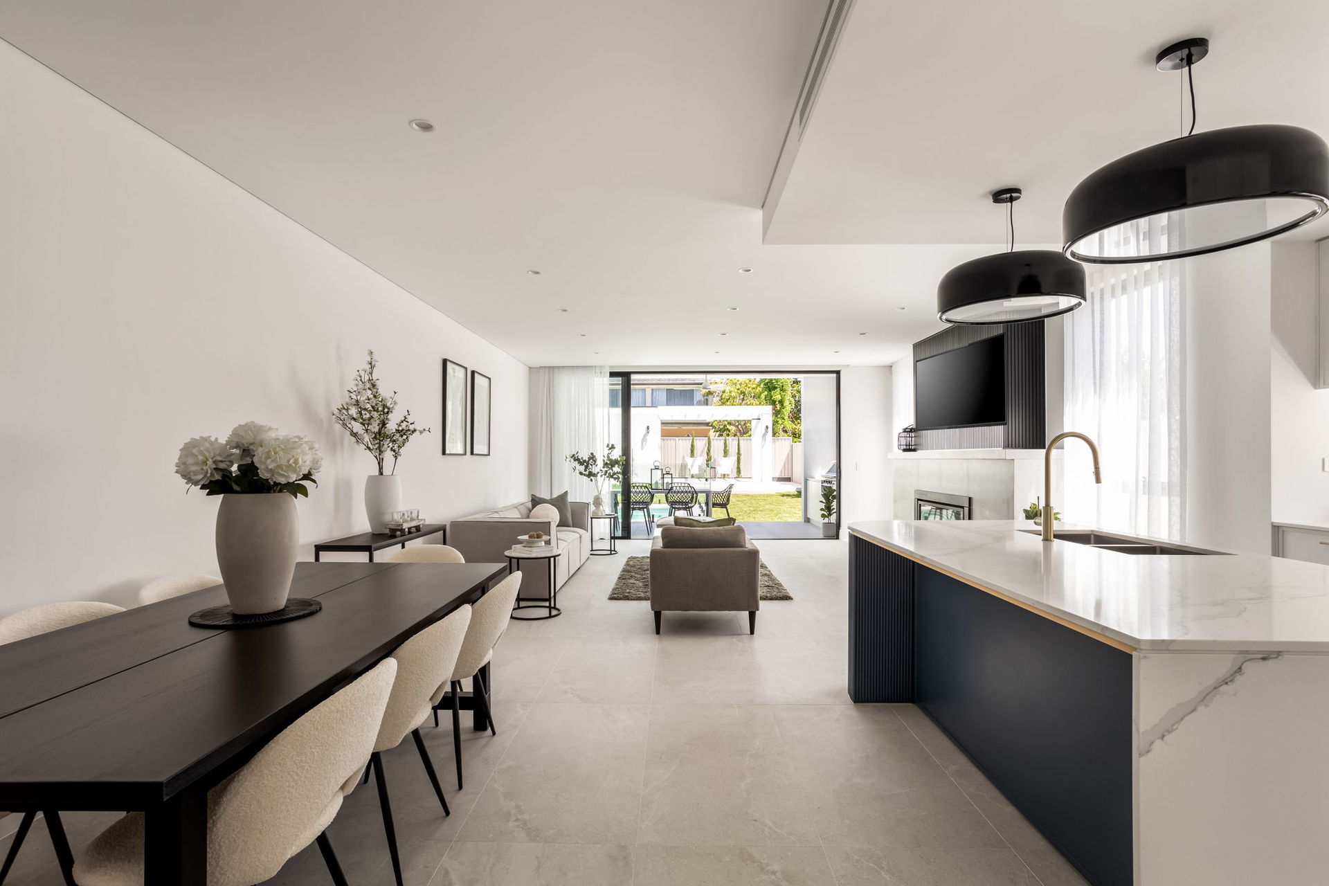 The state-of-the-art kitchen is equipped with premium Smeg appliances and a convenient butler's pantry, ensuring that cooking and entertaining are a breeze.