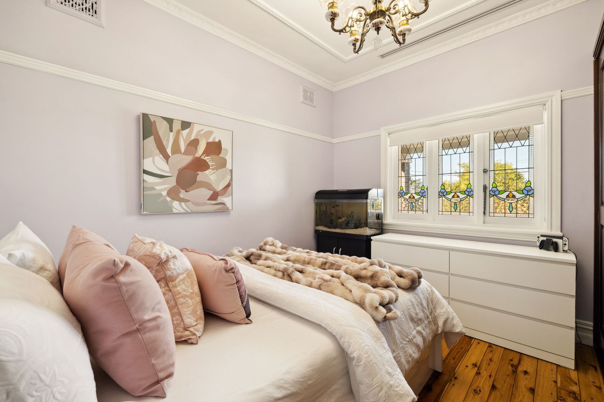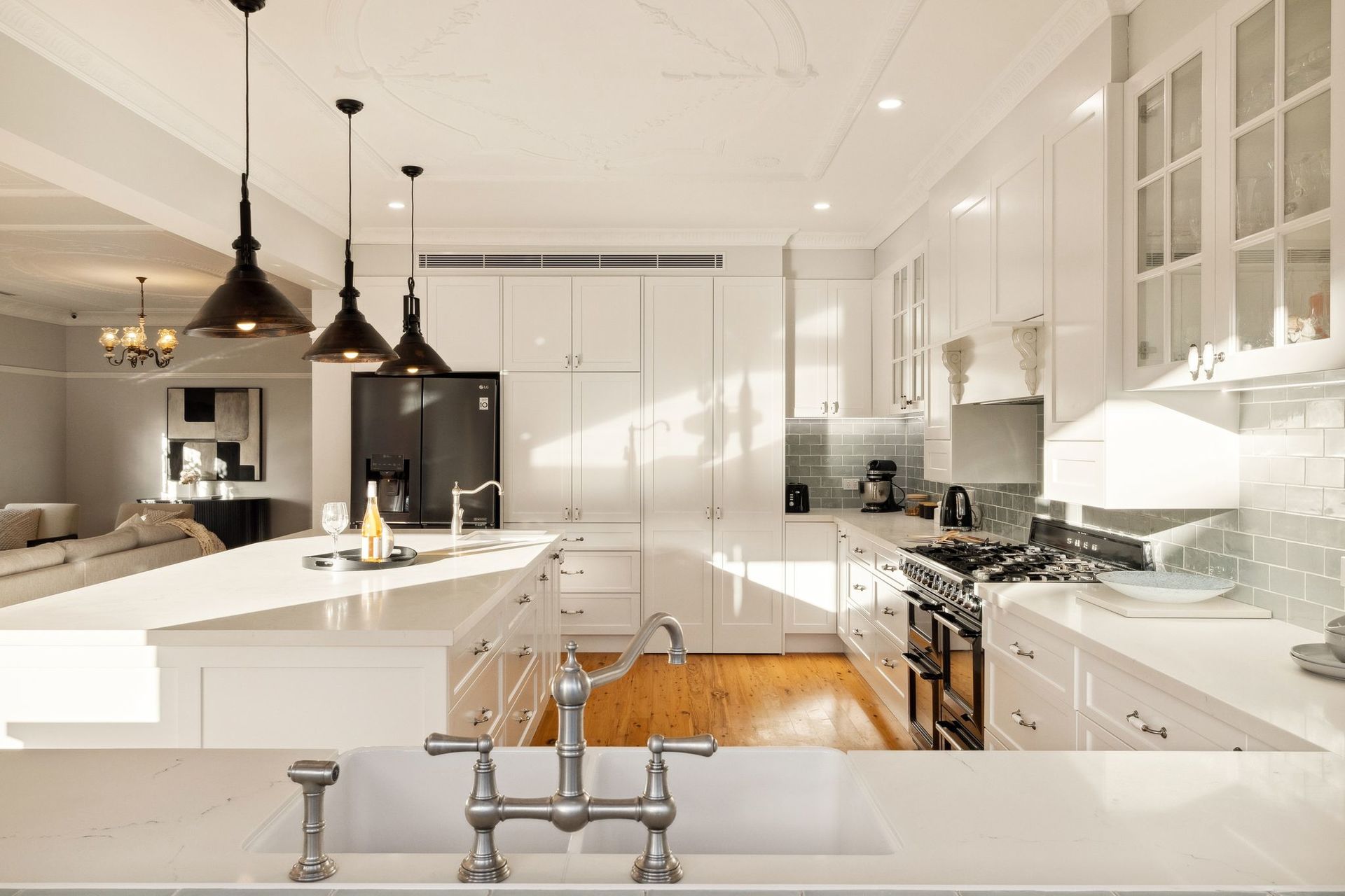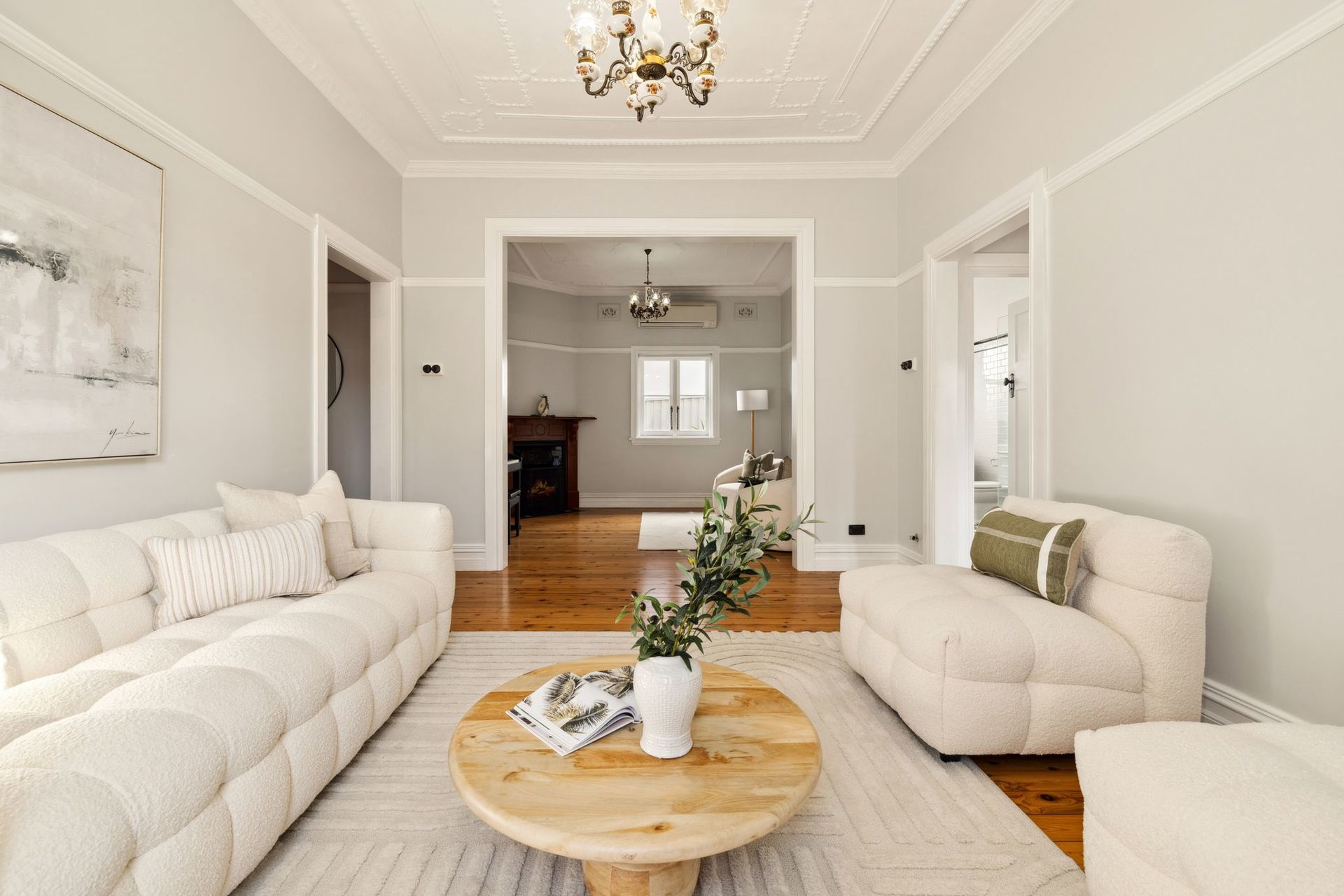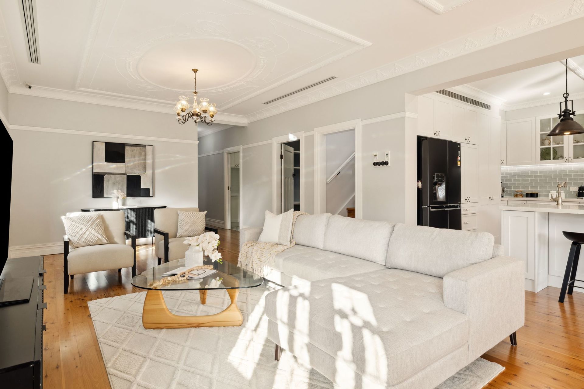• Multiple Living Areas: Enjoy versatile living spaces with ornately designed ceilings and polished timber floors that reflect the beauty and elegance of the 1920s while offering modern functionality.
