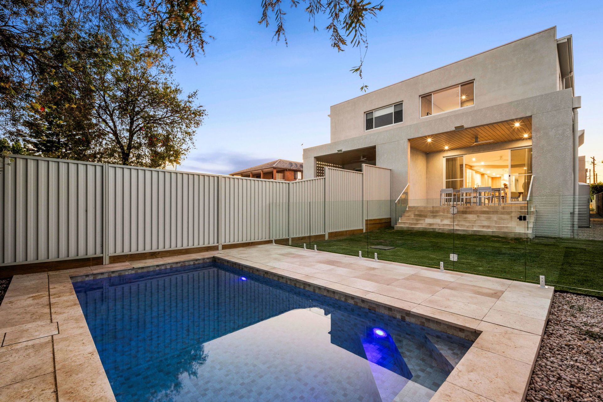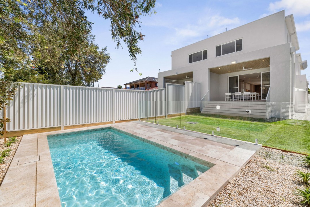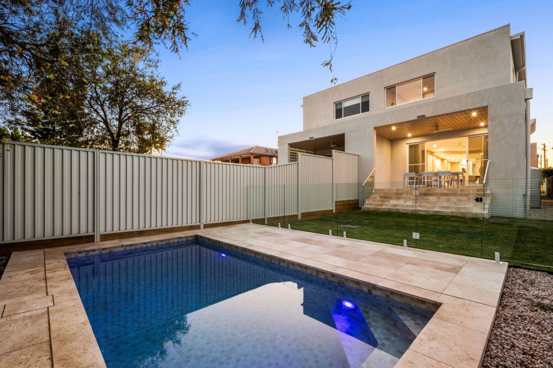 • Enjoy a gas-heated in-ground pool, paved entertaining area, and low-maintenance gardens framed by mature greenery, providing a serene backyard retreat.
