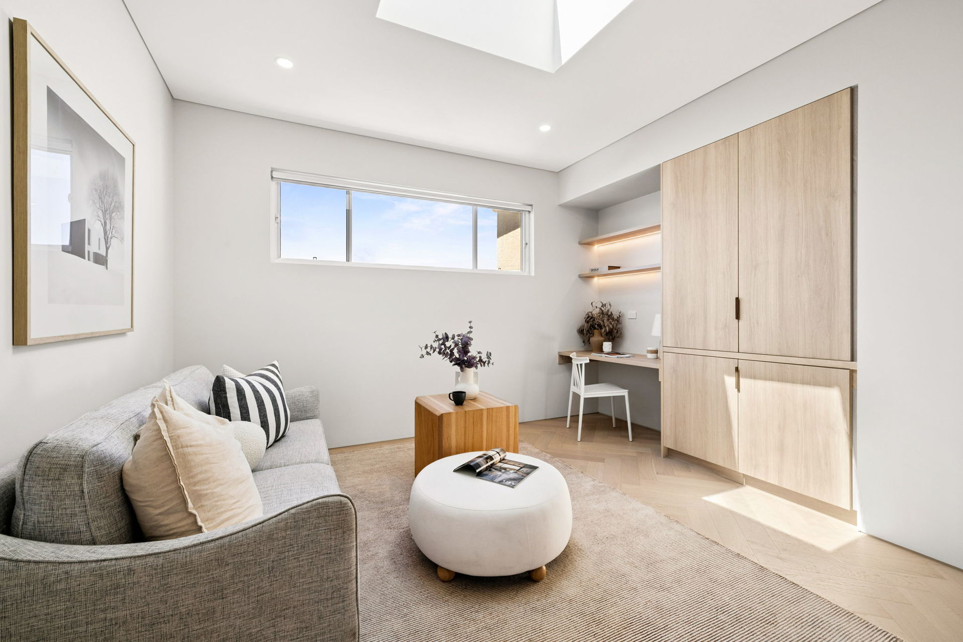 • On the second level, there are four generous bedrooms with built-in wardrobes, including a luxurious master retreat with walk-in wardrobe and elegant ensuite. Another upstairs bedroom also features its own private ensuite. Skylights throughout enhance natural lighting, creating a bright and airy atmosphere.