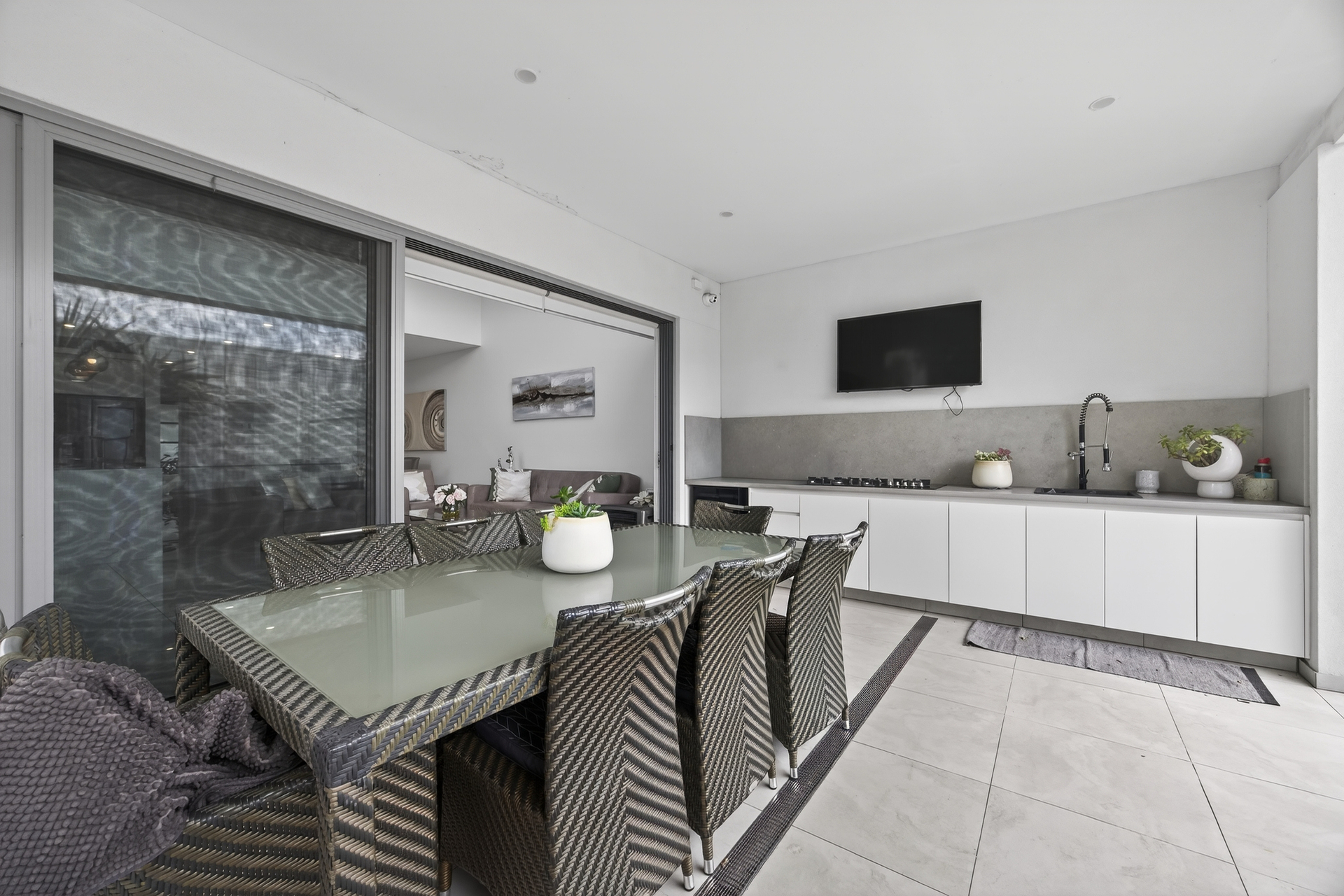 Step outside to an impressive covered outdoor entertaining area, fully equipped with a gas cooktop, sink, and built-in cabinetry - ideal for entertaining year-round. The level, grassed, and private backyard provides a safe and relaxing space for children or outdoor enjoyment.