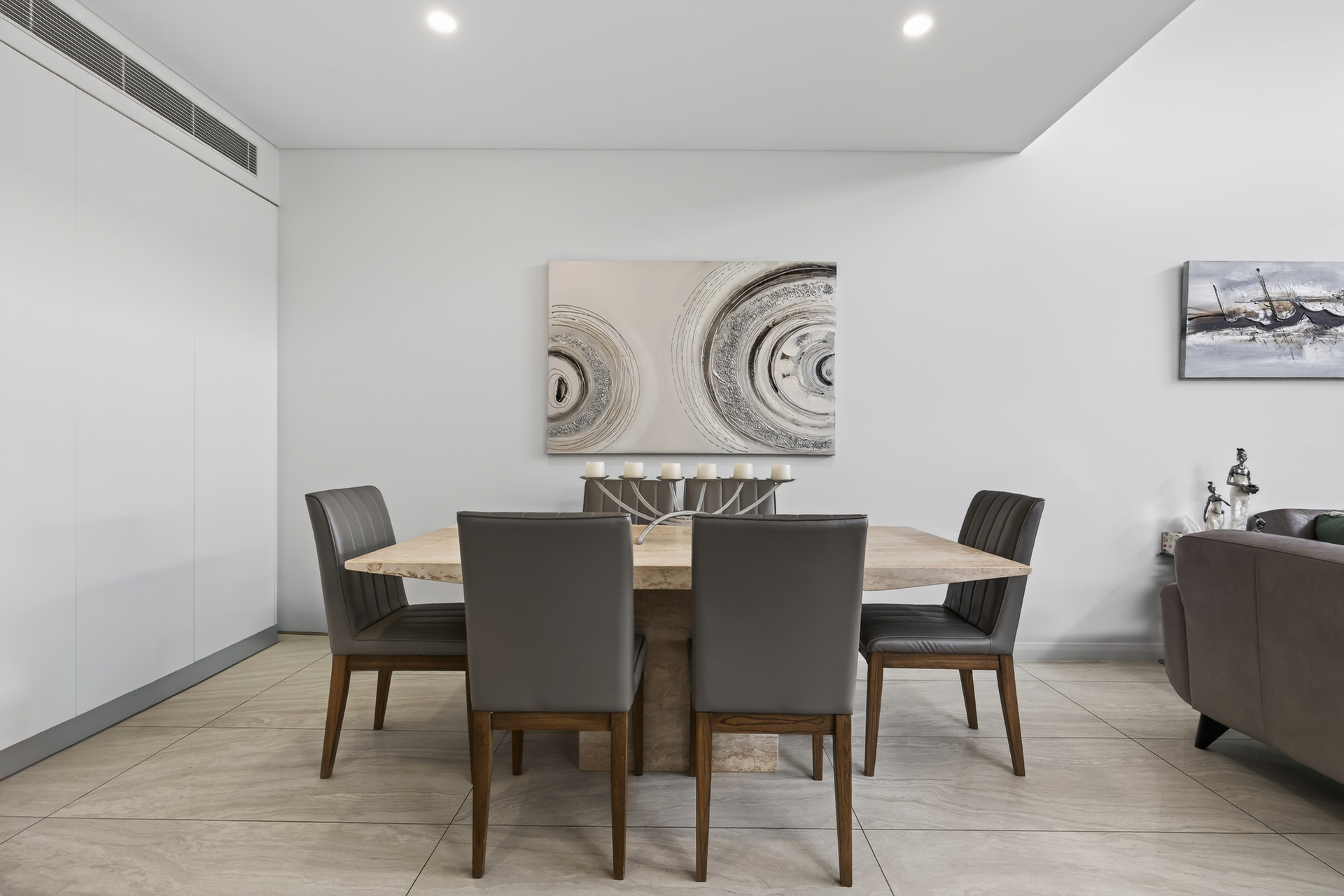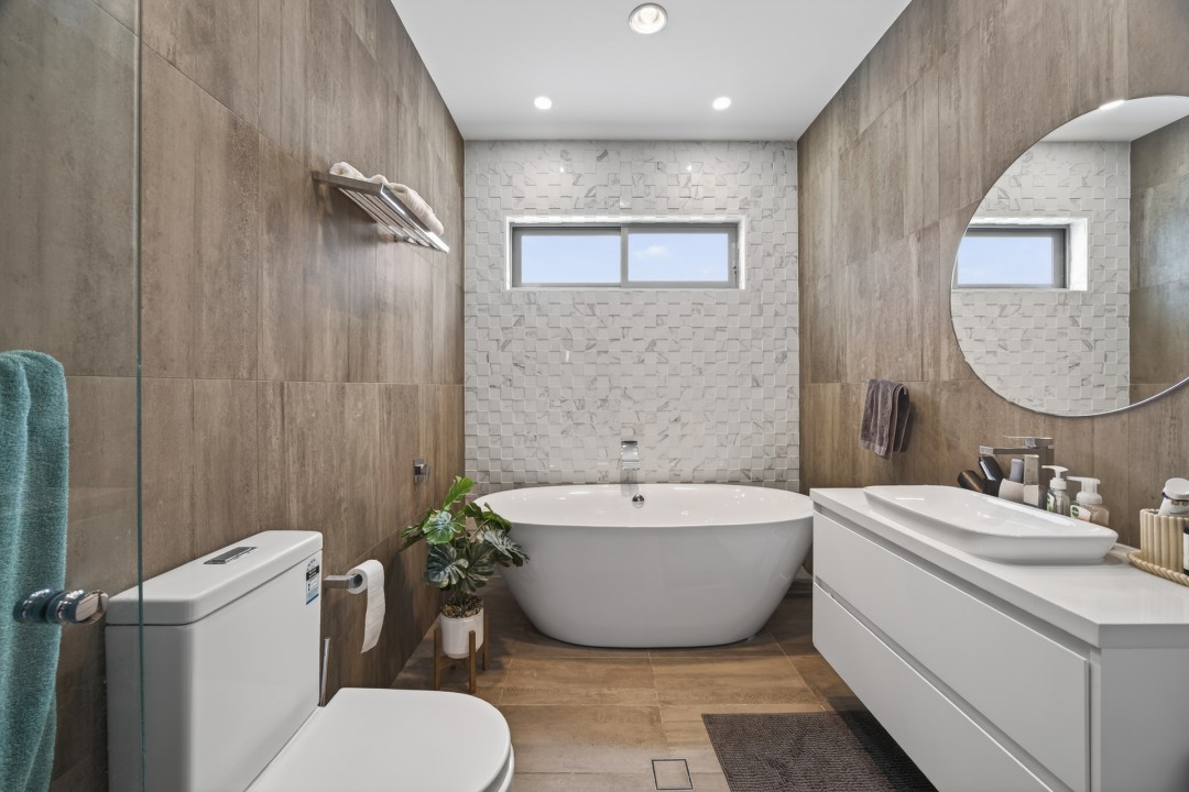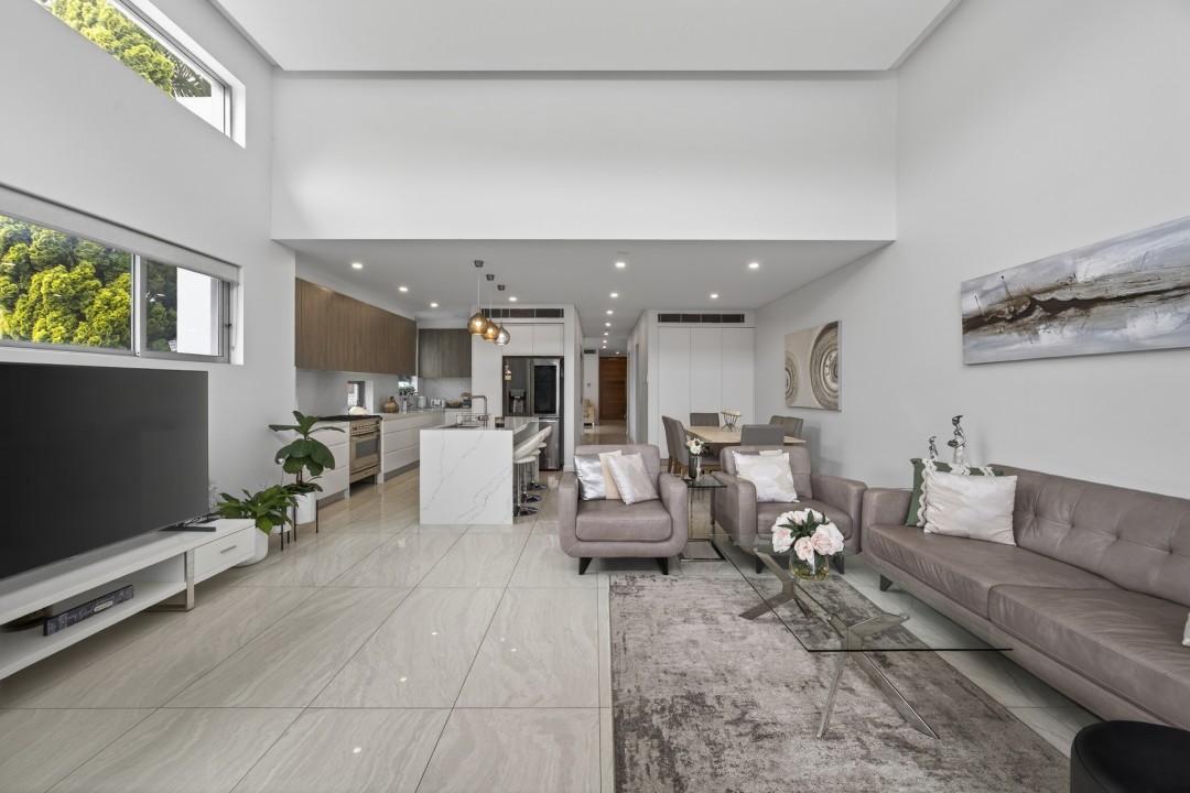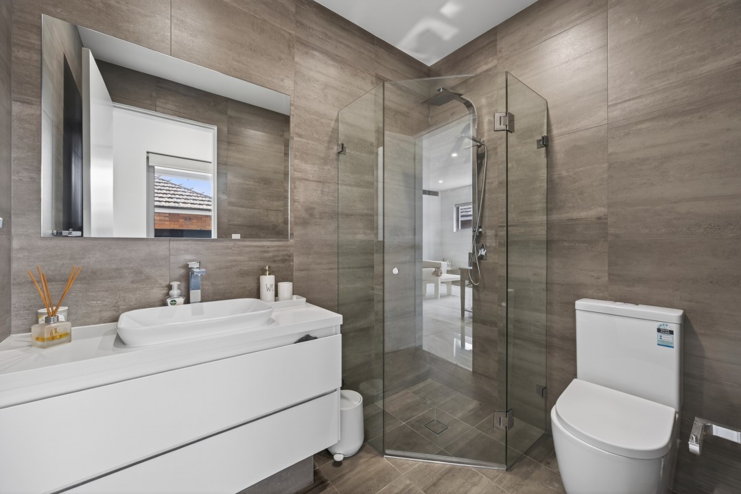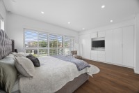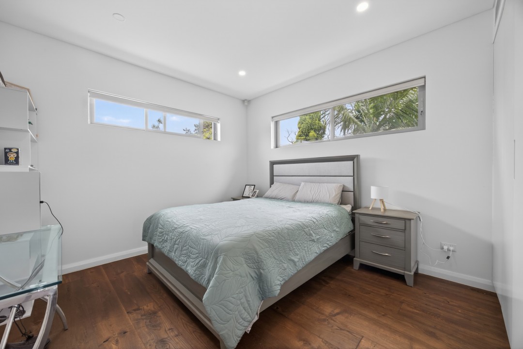 The main bedroom is a true retreat, featuring a sleek ensuite and custom-built cabinetry offering ample storage with a refined, tailored finish. Additional bedrooms are well proportioned and thoughtfully designed with built in robes.