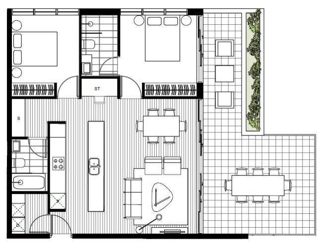 This modern 2 bedroom apartment features a large open plan living area, spacious bedrooms, and a large balcony perfect for entertaining or enjoying the views.