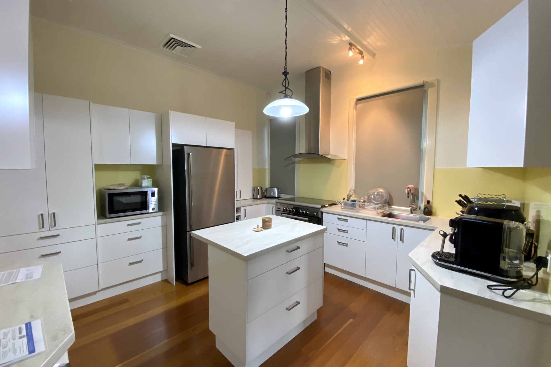 - Stone bench kitchen with ample storage and gas cooking, dishwasher included