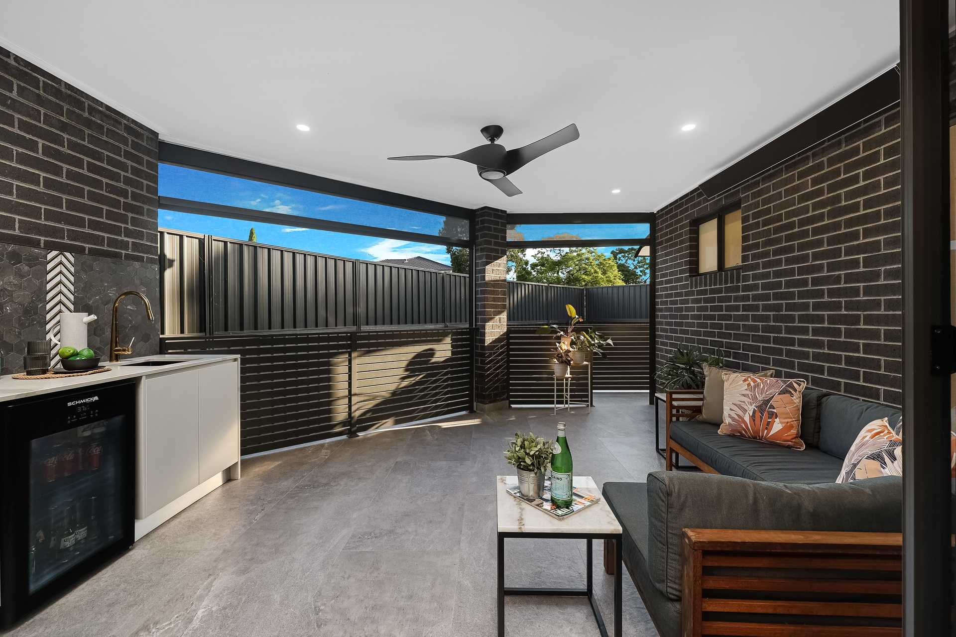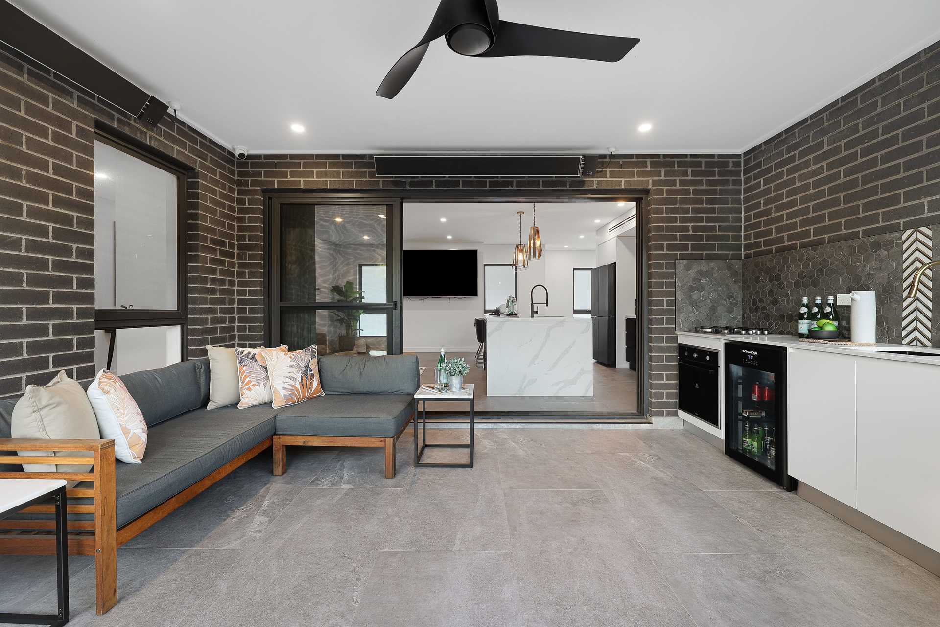 - Private alfresco with kitchen, oven, heater lamps, fan and block out shades