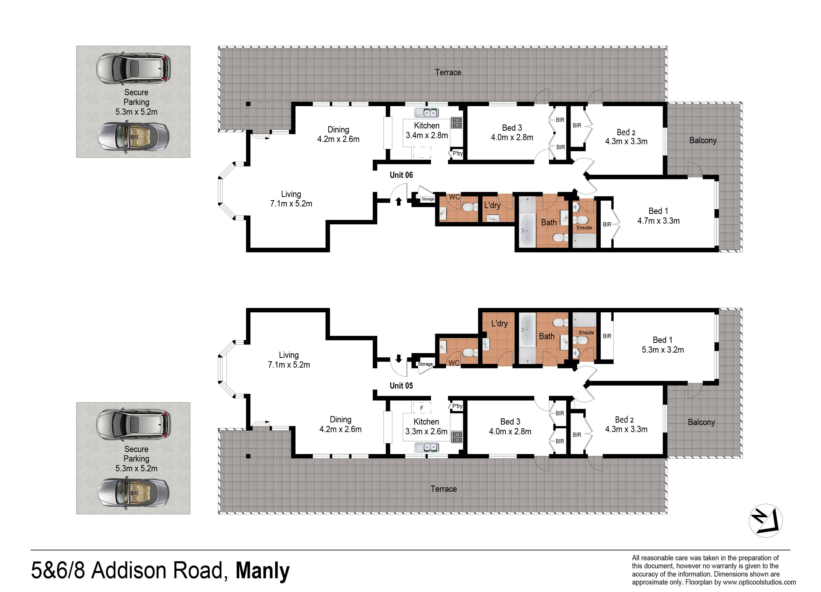-2 car spaces each