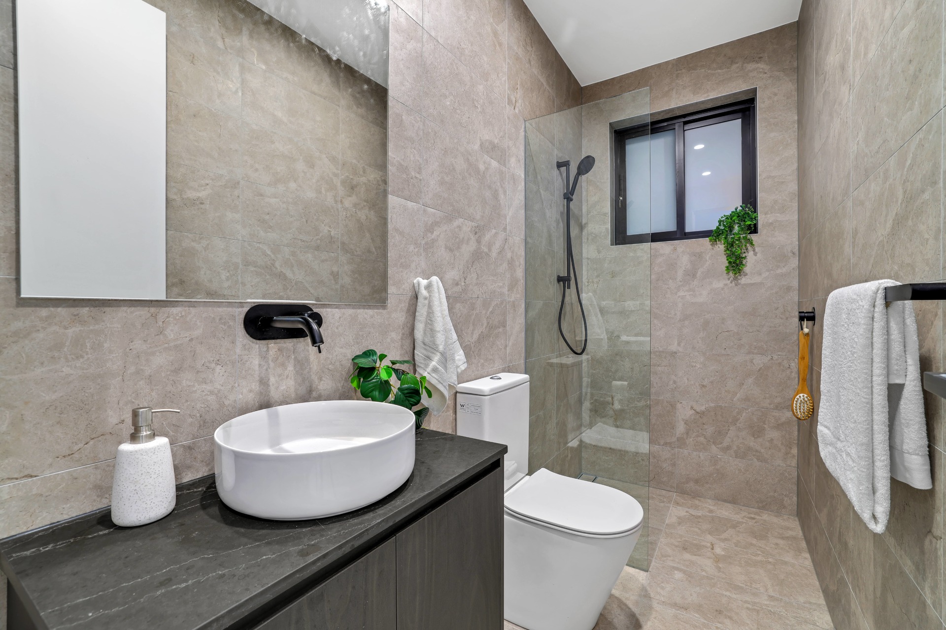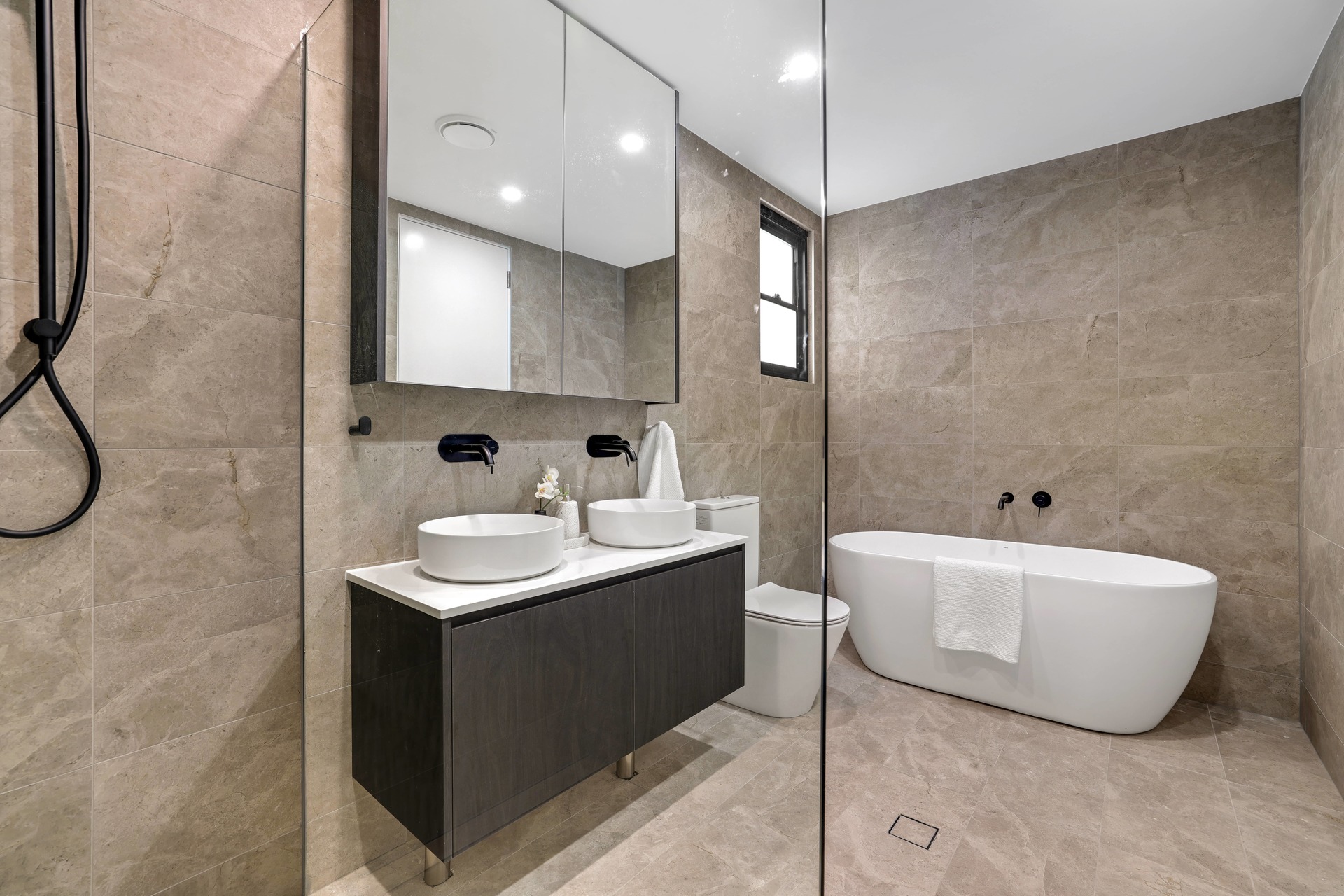 The master bedroom is a true retreat, with plenty of space to relax and unwind and the bonus of a separate study or perhaps a nursey if need be. The ensuite bathroom is equally impressive, with a double vanity and oversized shower.