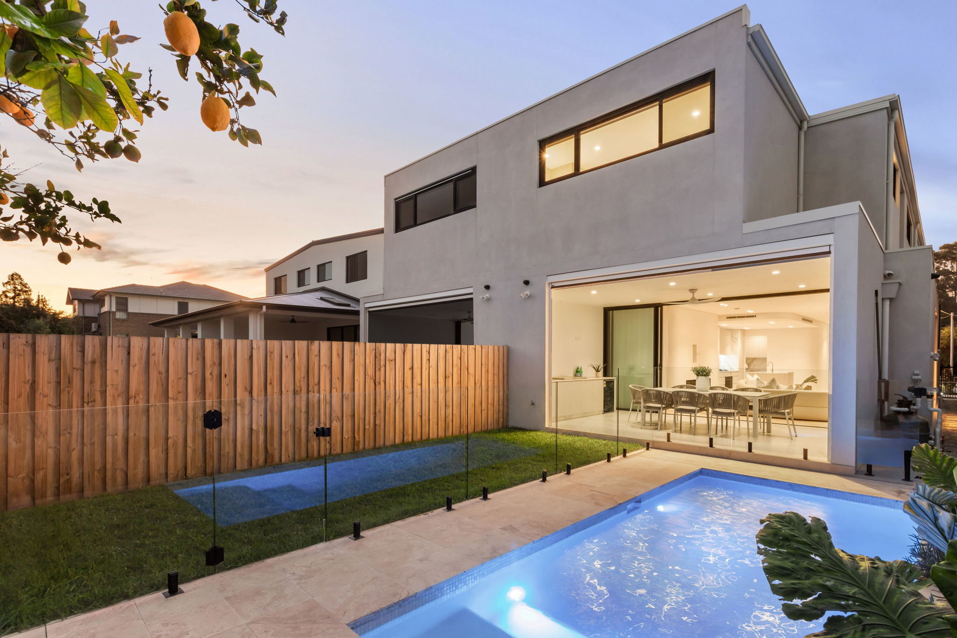 Remote awning shields alfresco area from the weather to create an extra room