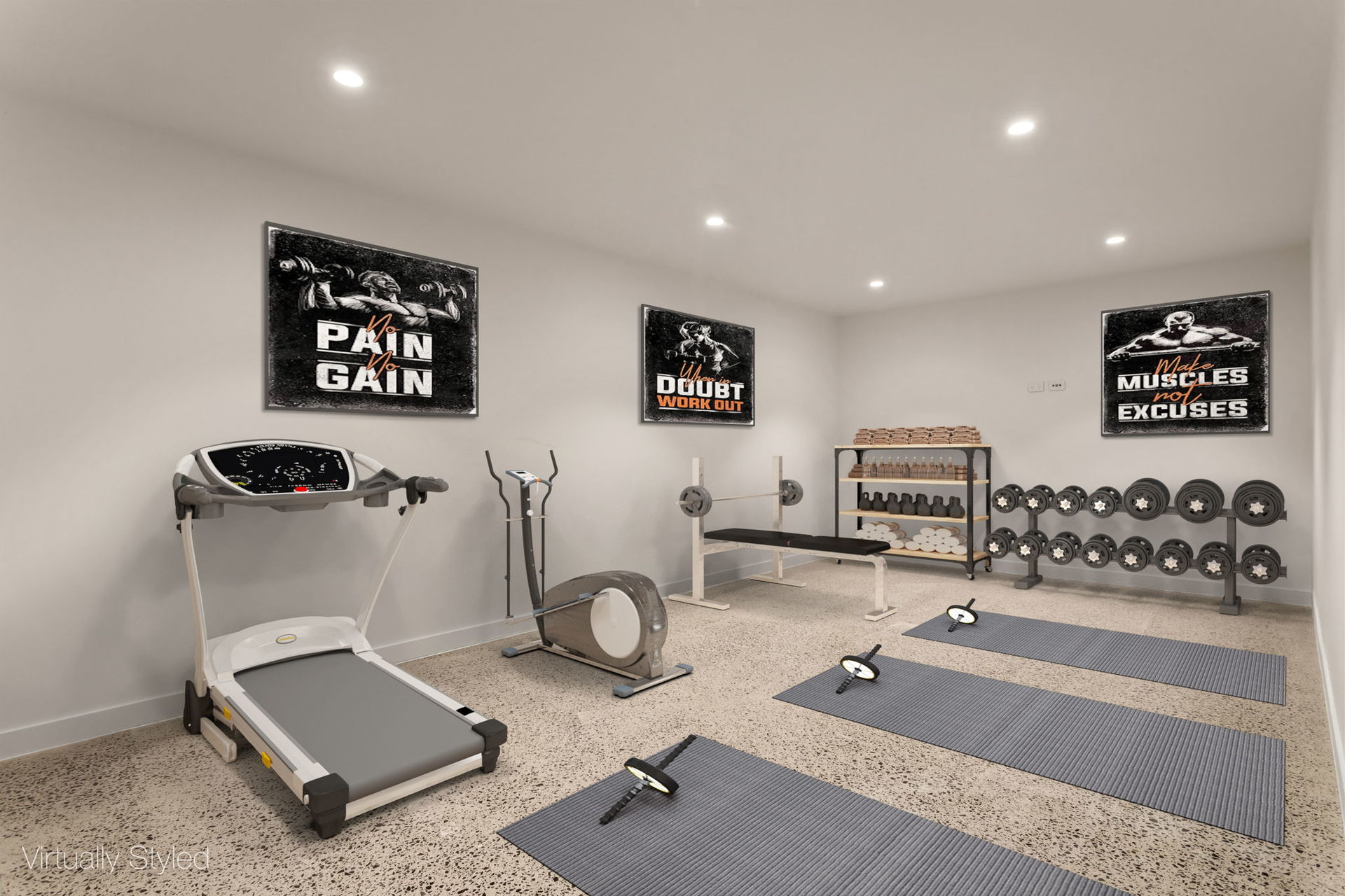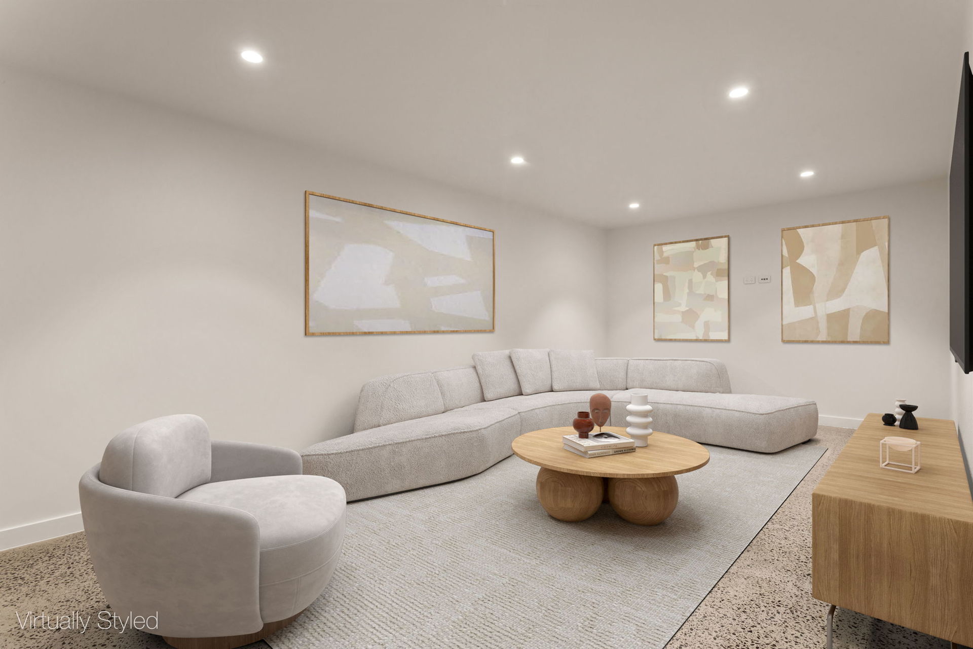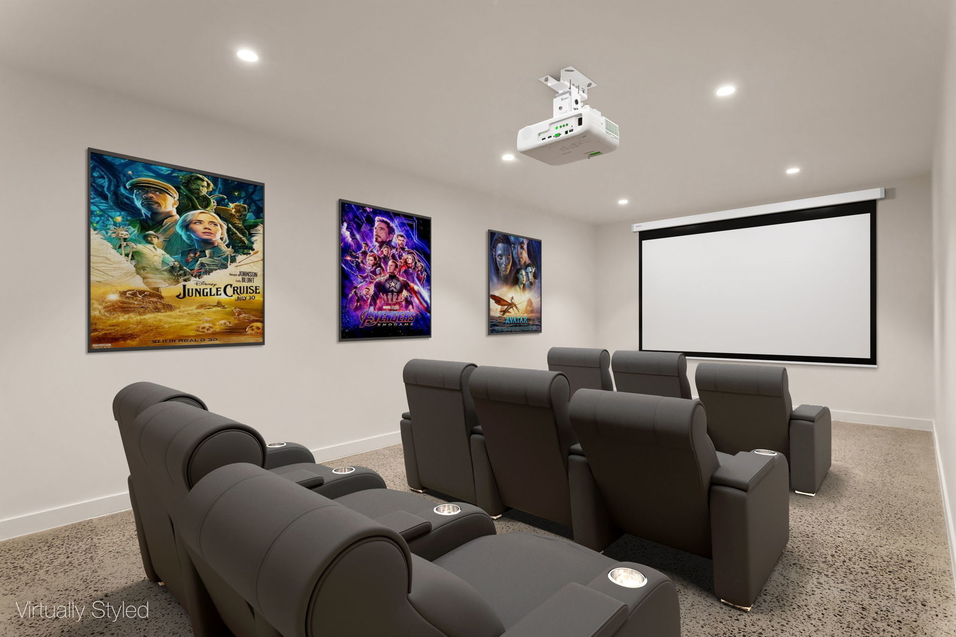 Basement level includes powder room, store rooms, plus AV points from cinema