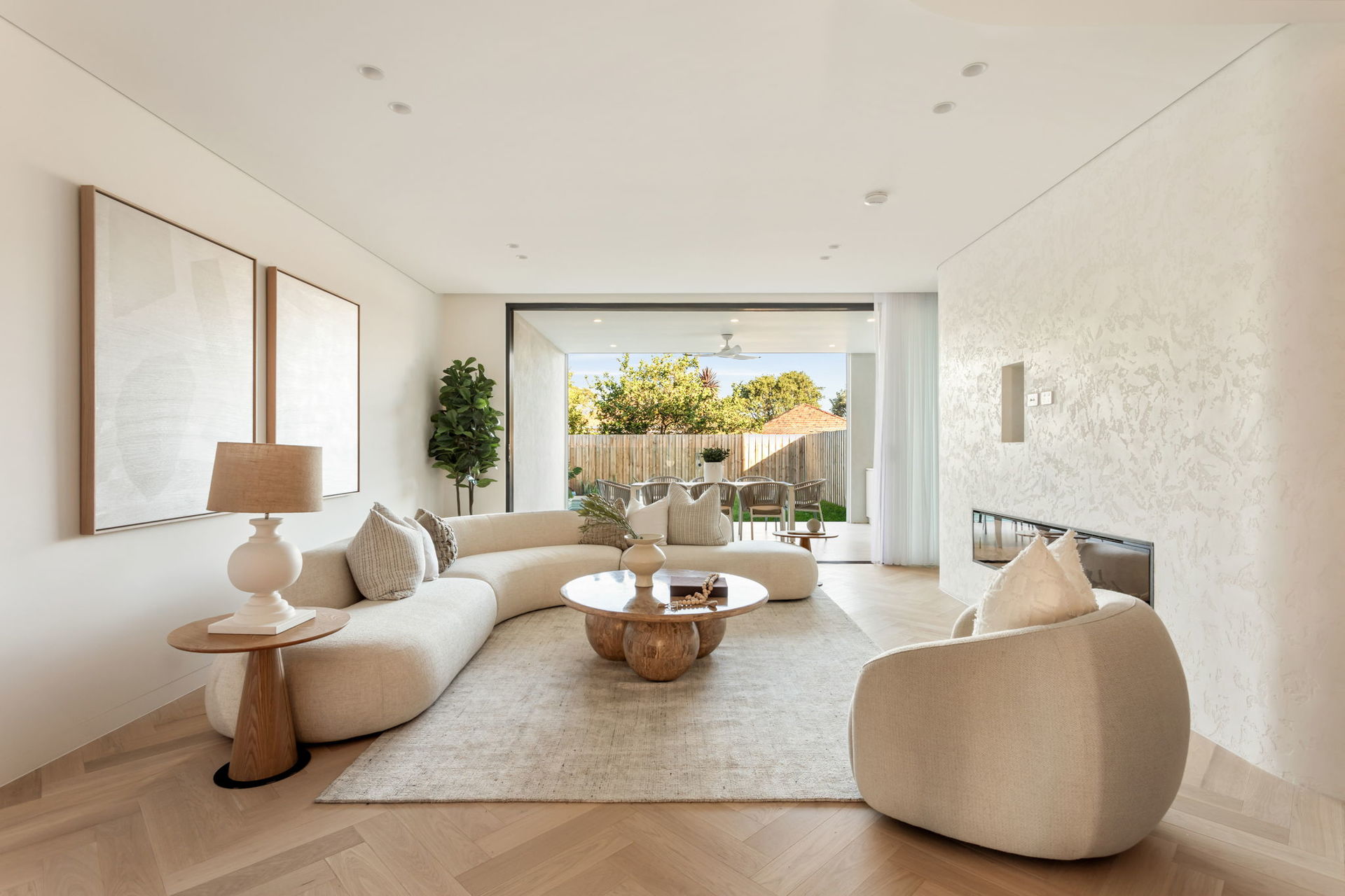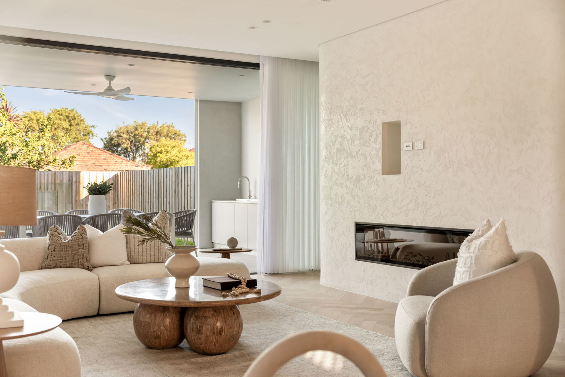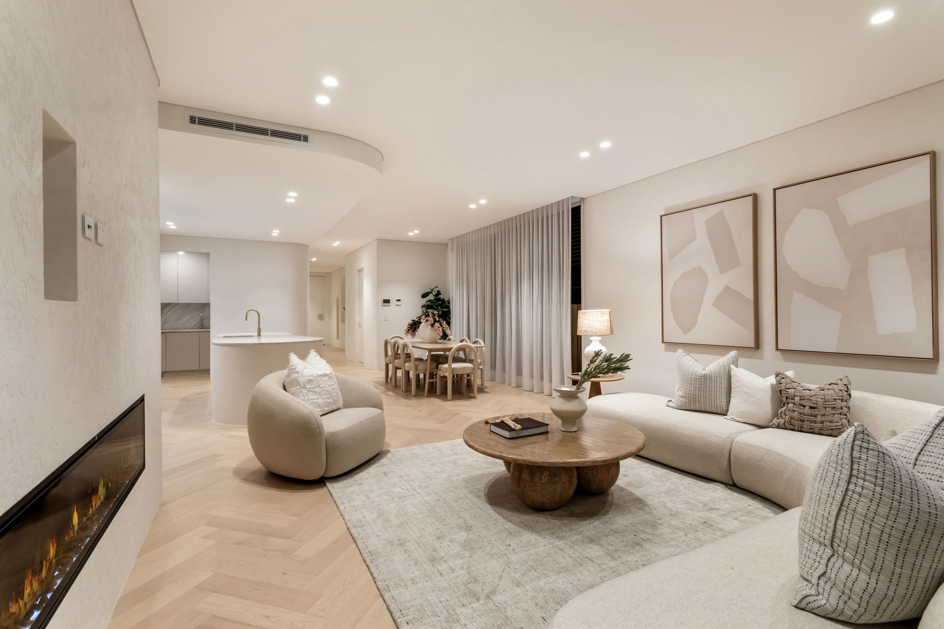 Remote control curtains, VRV air con system, landscape fireplace in the living area