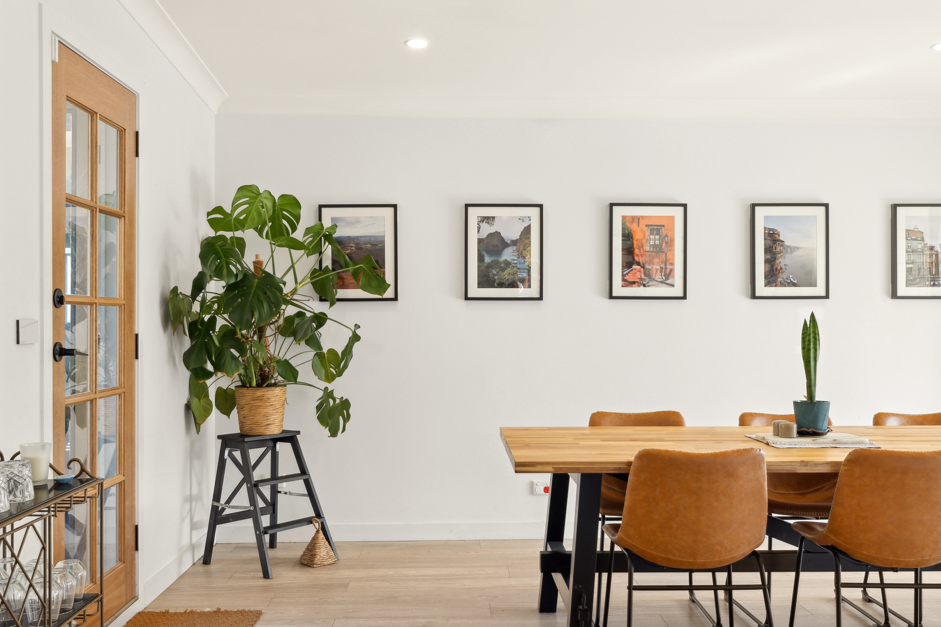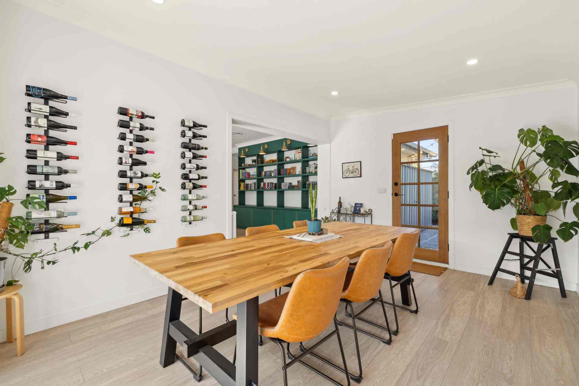 The home features large open-plan living and dining areas, perfect for family gatherings and hosting guests. Timber flooring throughout the main living areas adds warmth and style, creating a welcoming atmosphere. With three generously sized bedrooms, the home is ideal for families, and the master bedroom comes with a built-in wardrobe for added convenience. The modern bathroom is both chic and functional, offering his and her vanities, as well as a separate shower and bath.