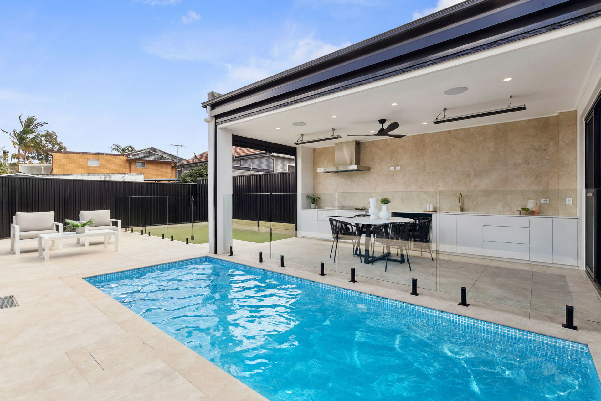 Outdoors, this property truly excels as an entertainer's haven. The alfresco area is fitted with a built-in BBQ, commercial rangehood, bar fridge, sink, external speakers, ceiling fan and heaters, all protected by automatic patio blinds. Overlooking a sparkling swimming pool and low-maintenance synthetic lawn, this is the ultimate year-round entertaining space. Enhanced further by a 13.2kW solar system, Bosch alarm, 8MP CCTV and premium finishes. Located a stroll from schools and a short drive from Roselands Shopping Centre and Canterbury Golf Course this home sets a new benchmark for family living in Roselands.