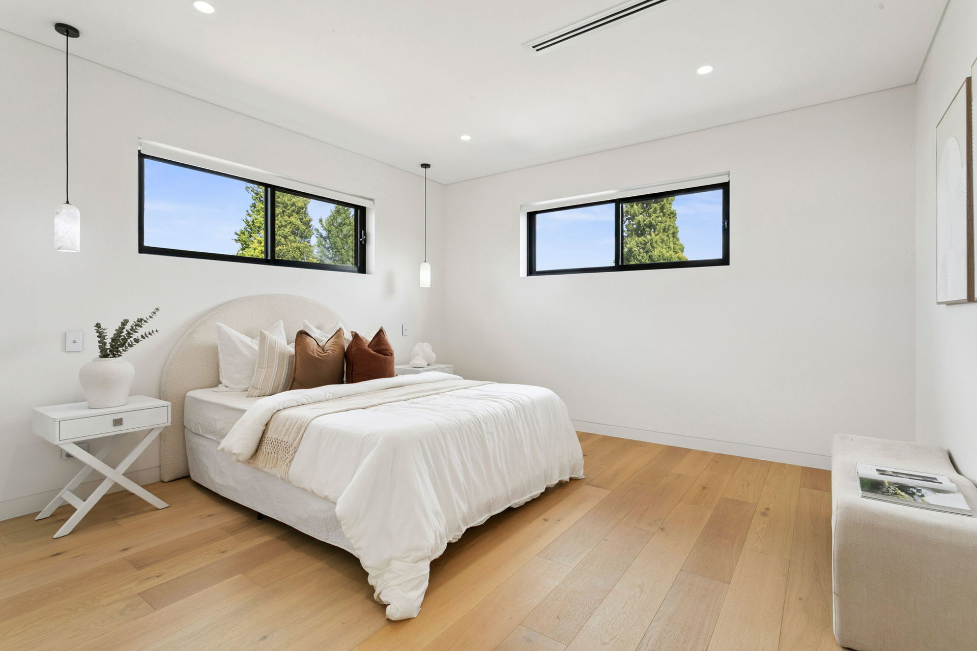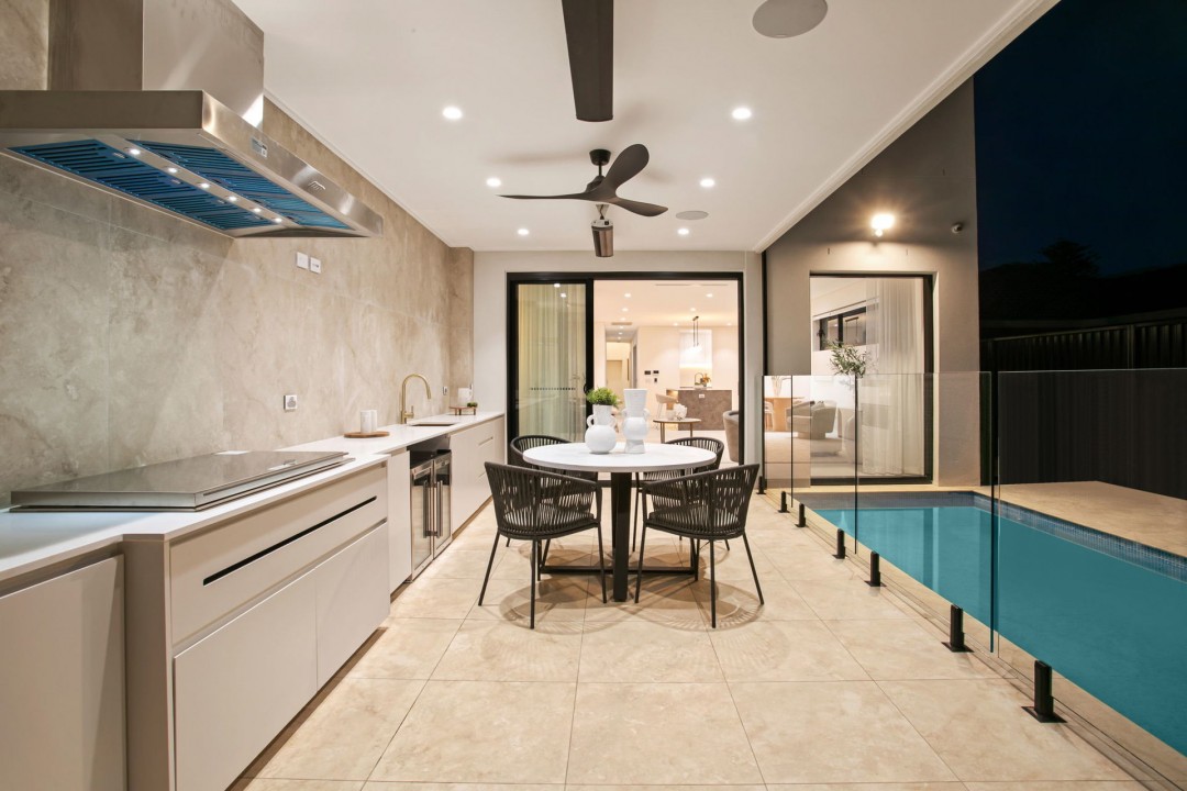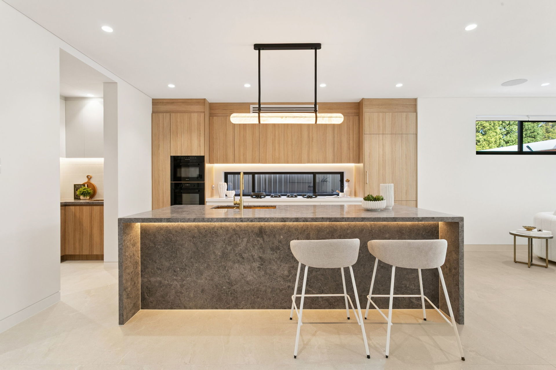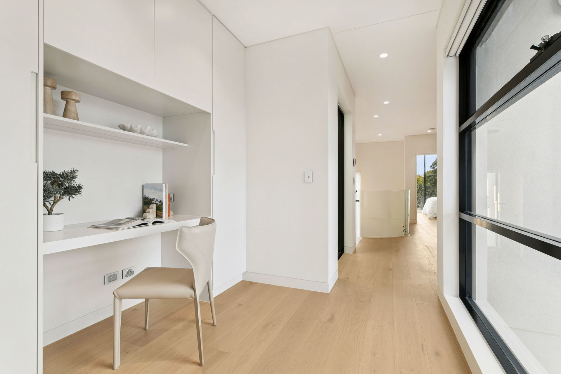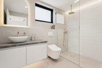 At the heart of the home, expansive open living zones are seamlessly connected to a gourmet kitchen appointed with Miele appliances, custom hinged cabinetry, pit cooking and shadow-line finishes. Upstairs offers a second living area and a built-in study space, ideal for families who value flexibility. Every detail has been considered for convenience and comfort, with Pixie smart automation, Airtouch ducted air-conditioning to both levels, electric blinds with ivory sheers, and Ubiquiti WiFi extenders ensuring effortless connectivity.