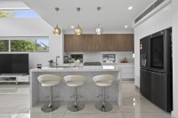 At the heart of the home is a spacious, light-filled kitchen, complete with quality appliances, generous bench space, and a butler's pantry providing excellent storage and prep space. The kitchen adjoining onto a large, open plan living and dining area is perfect for entertaining.