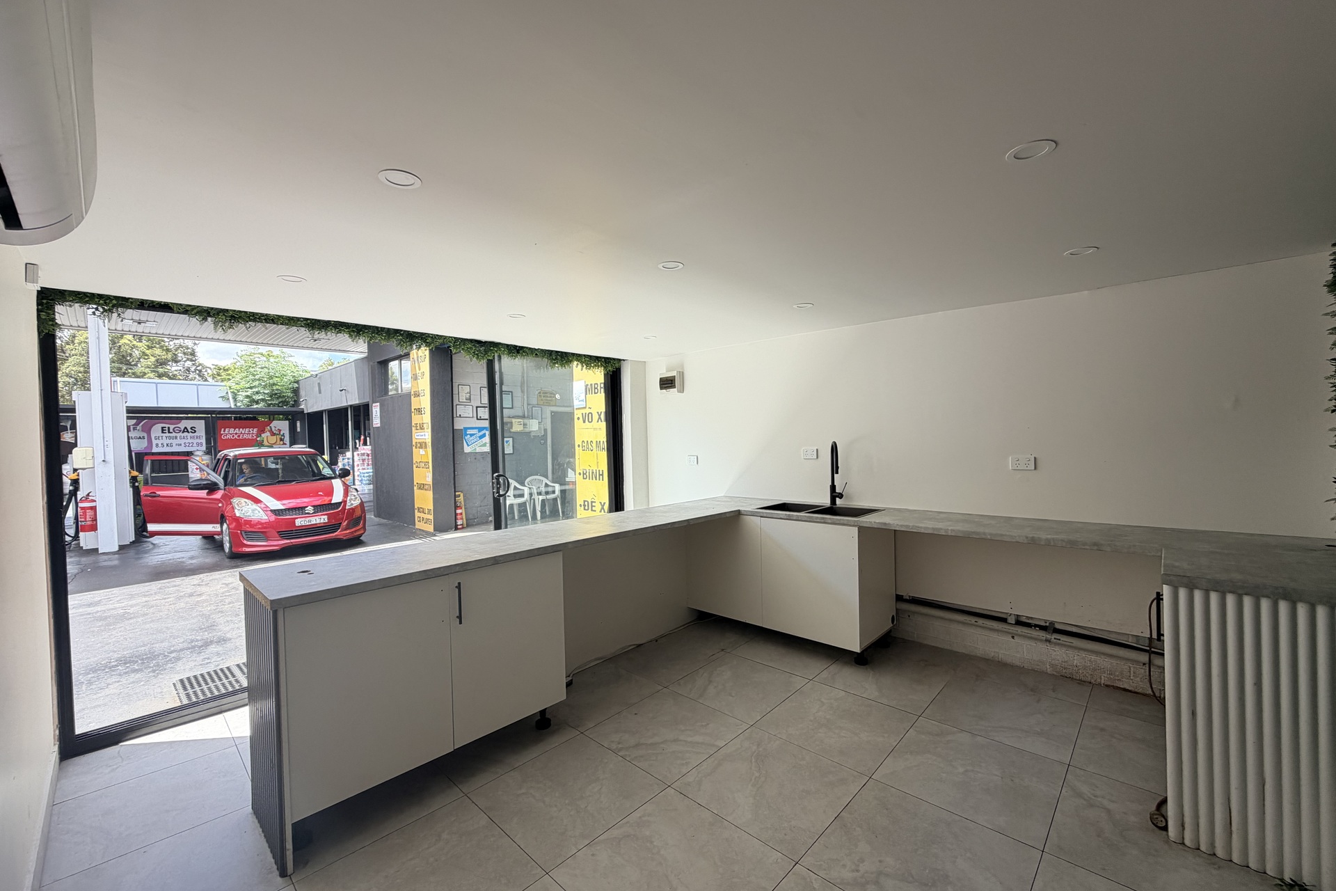 Compact tiled retail space available for lease within a high-traffic service station. The premises includes built-in bench space and a sink, making it suitable for food or beverage preparation. Bathroom access can be arranged by agreement.