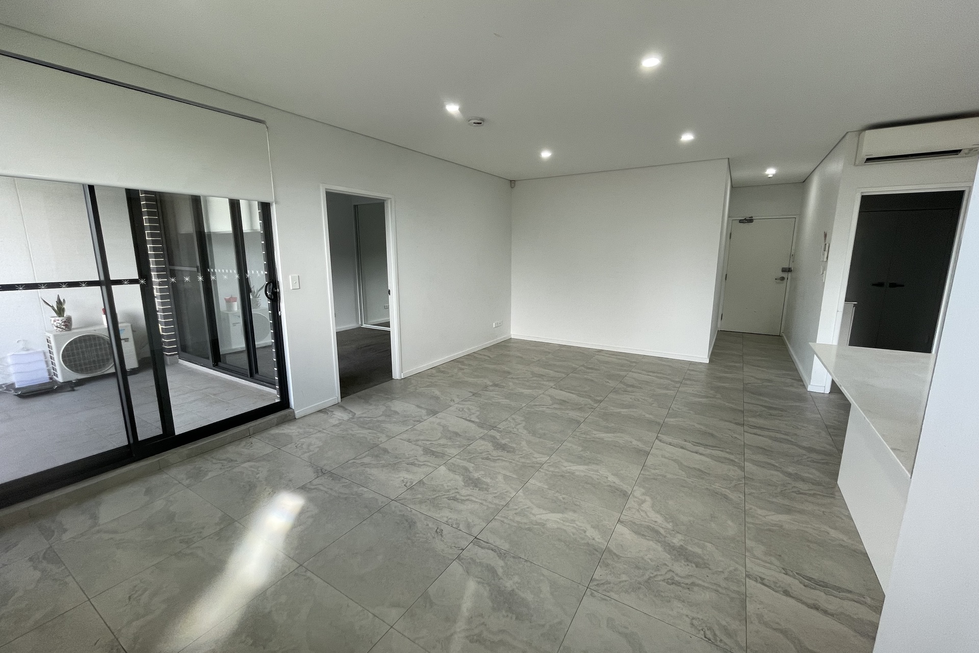 Open-plan living and dining area with split system a/c