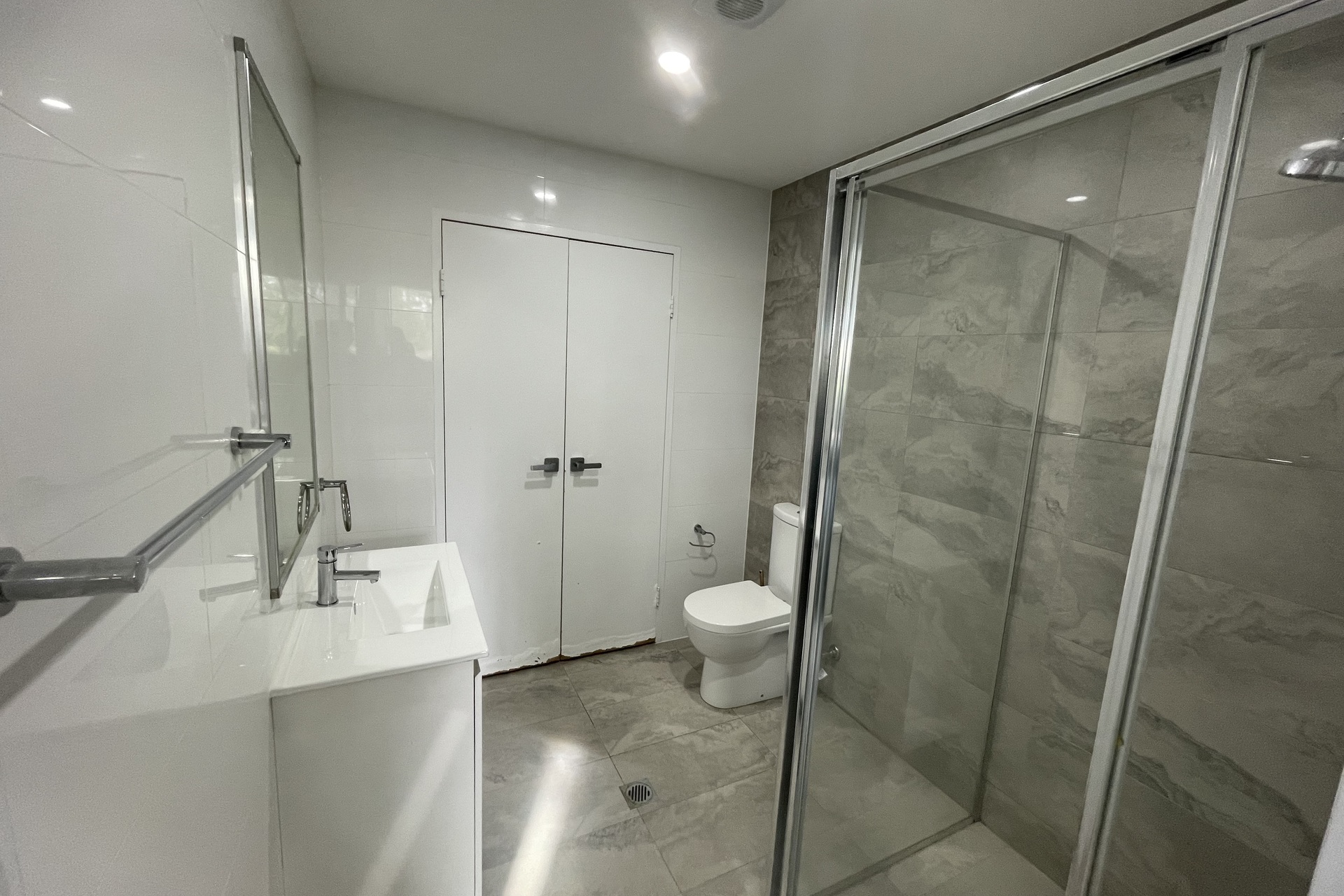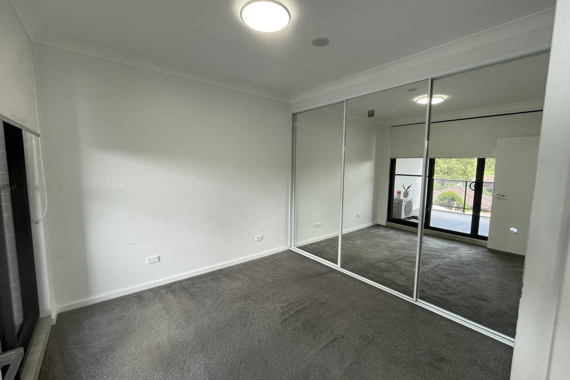 Spacious bedroom with built-in wardrobe and balcony access